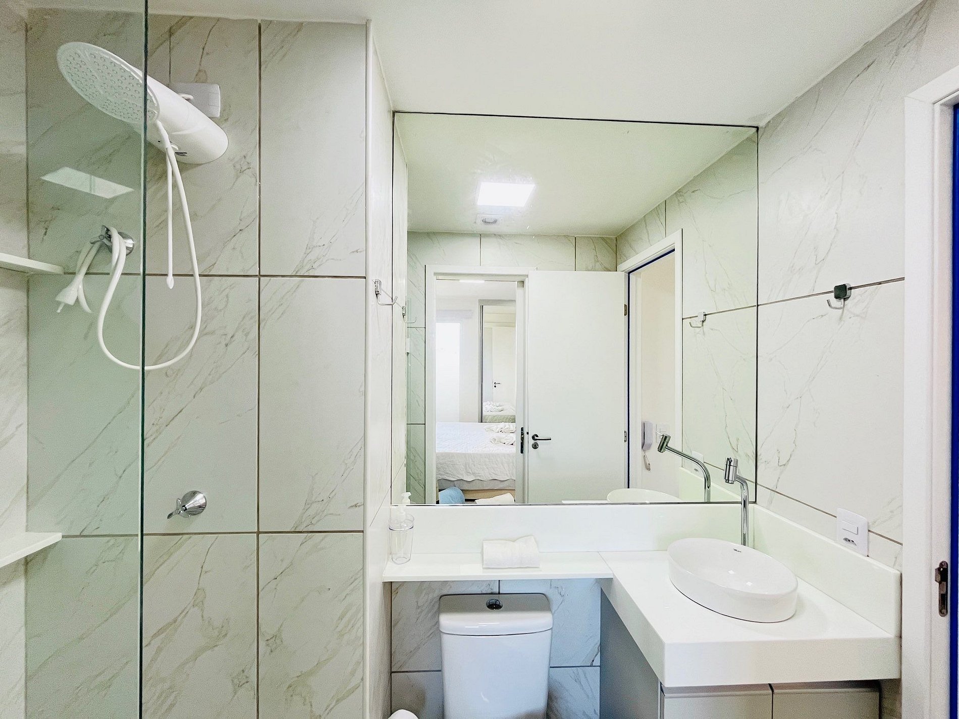 Além disso, o condomínio oferece infraestrutura com piscinas, academia, brinquedoteca e área de convivência para você relaxar após um dia de praia.