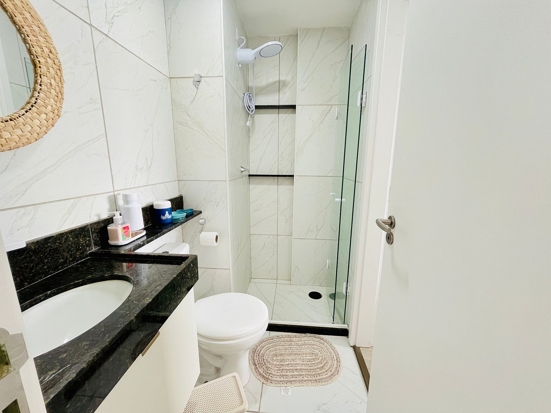 Além disso, o condomínio oferece infraestrutura com piscinas, academia, brinquedoteca e área de convivência para você relaxar após um dia de praia.