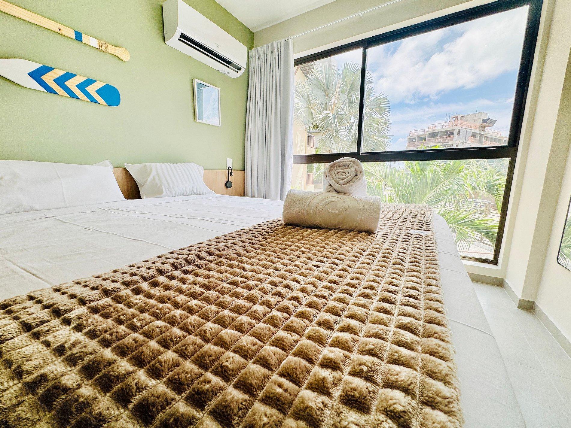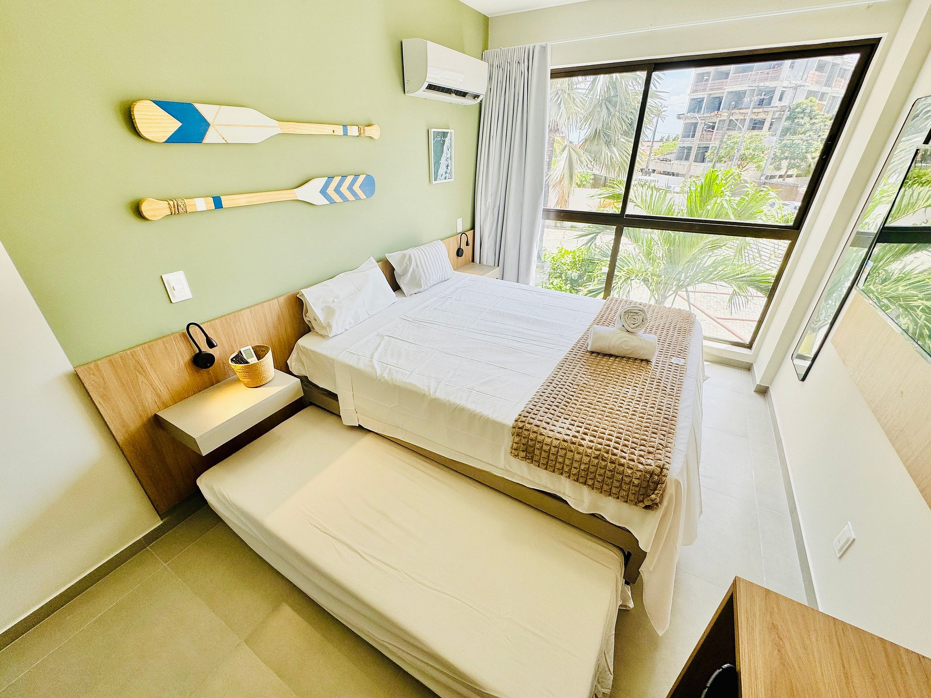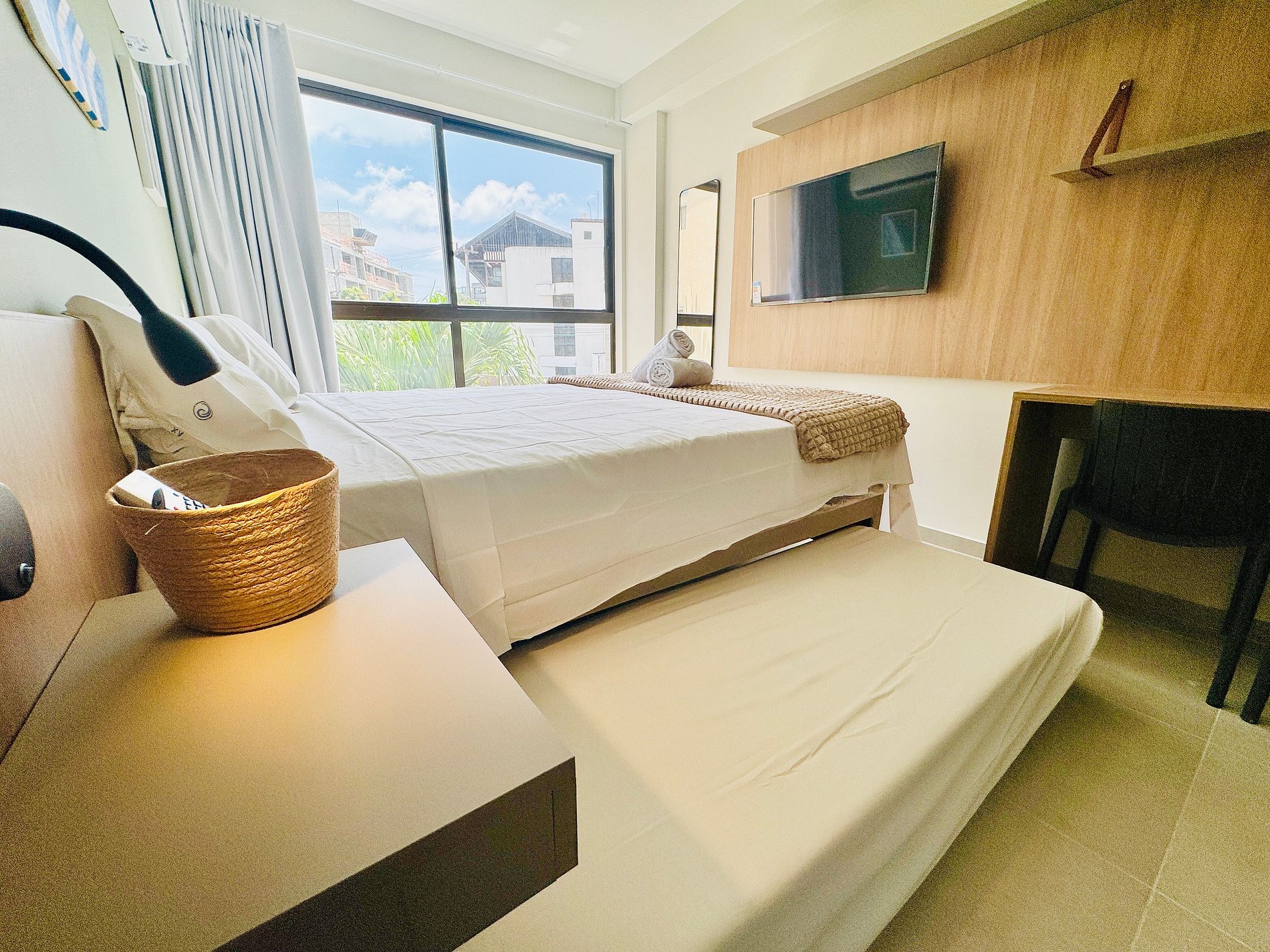 Com localização privilegiada, a apenas 100 metros das famosas piscinas naturais de Porto de Galinhas! Apartamento equipado com ar condicionado split, Wi-Fi, TV, banheiro e utensílios gerais. Perfeito para um casal, mas acomoda confortavelmente até 4 pessoas com uma cama de casal e dois bicamas de solteiro.