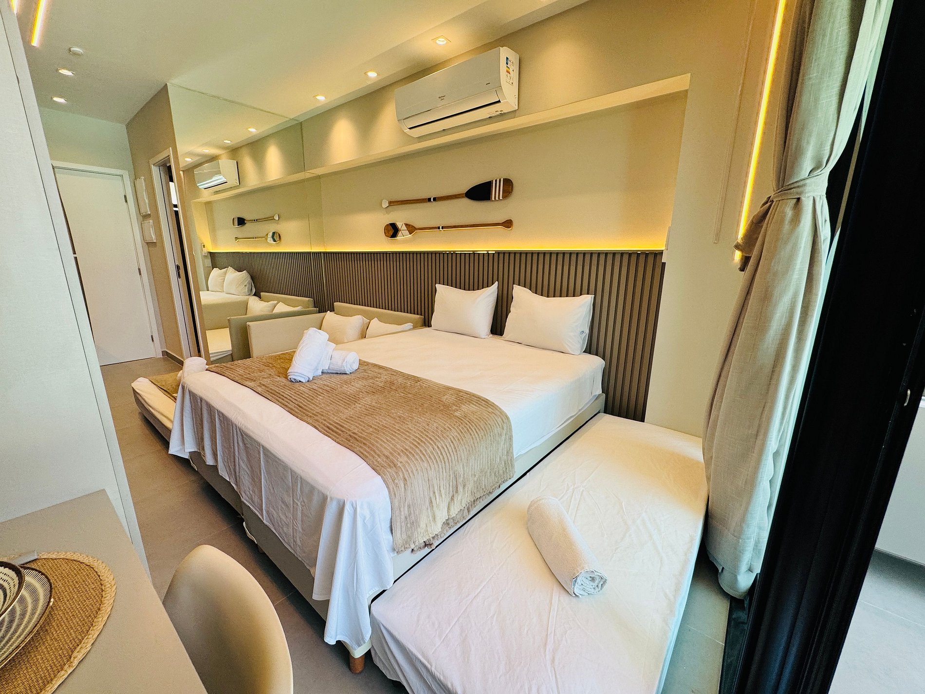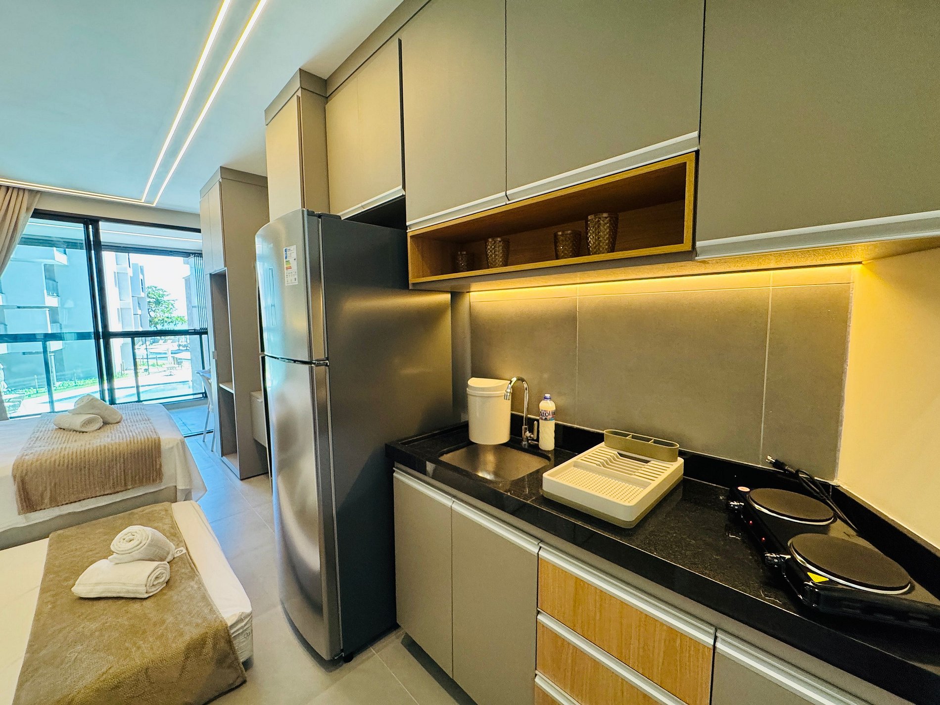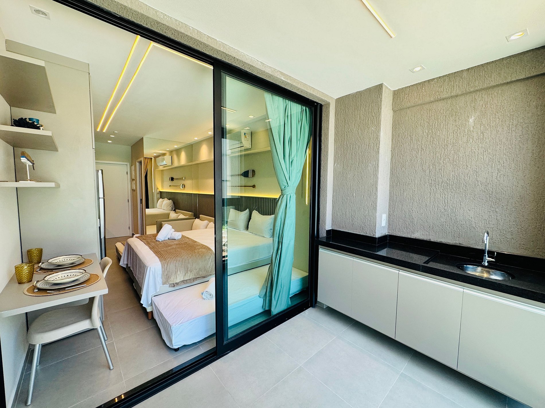 Sofisticação pé na areia no Nomar Carneiros! Novíssimo flat de 1 quarto (até 5 hóspedes), totalmente equipado e beira-mar, localizado na Praia de Carneiros.