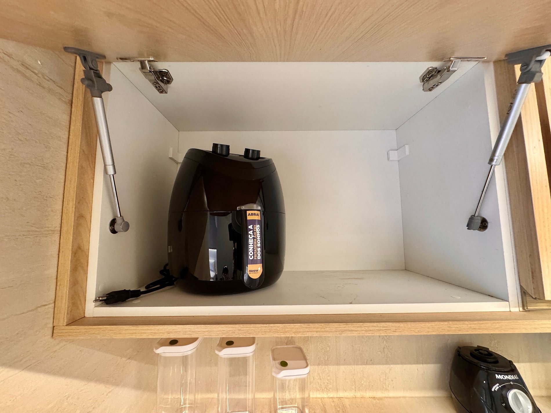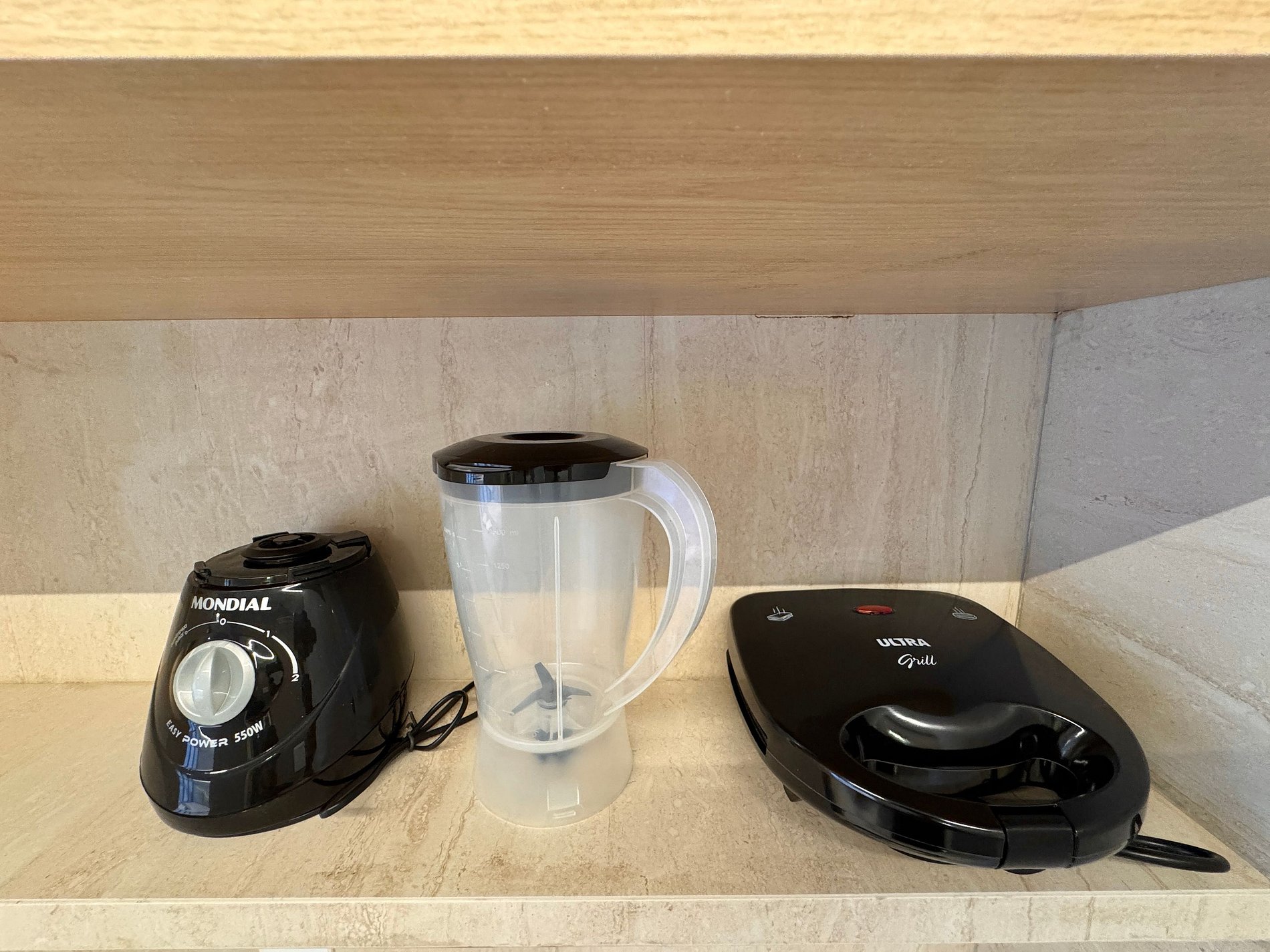 - Cozinha equipada com geladeira, micro-ondas, airfryer, sanduicheira, liquidificador e utensílios diversos