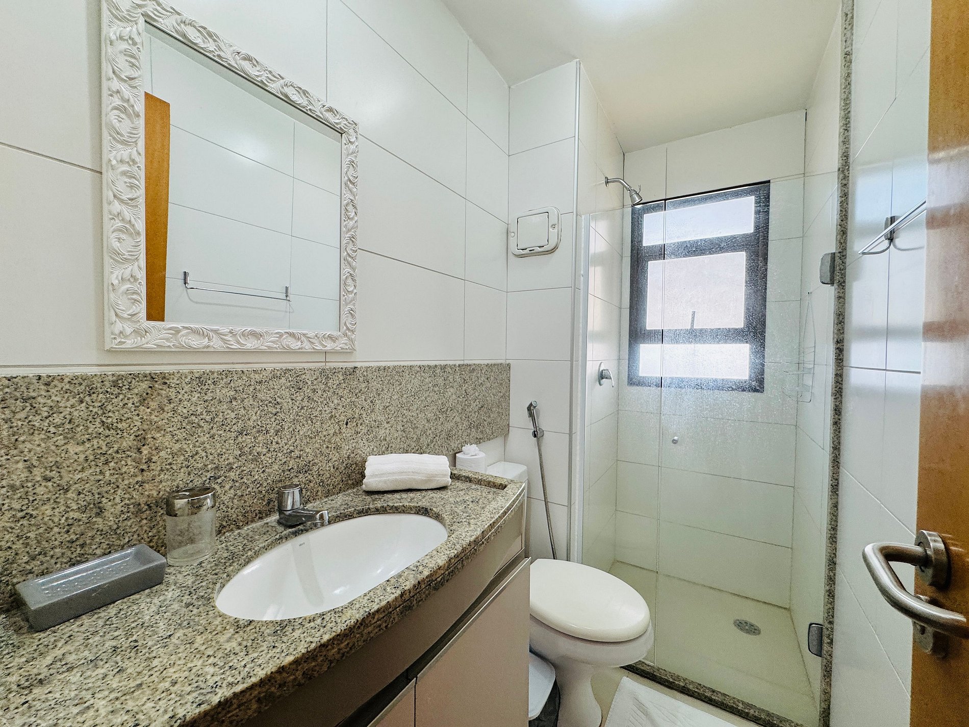 O apartamento totalmente mobiliado proporciona um ambiente confortável e funcional, equipado com todas as comodidades essenciais para sua estadia.