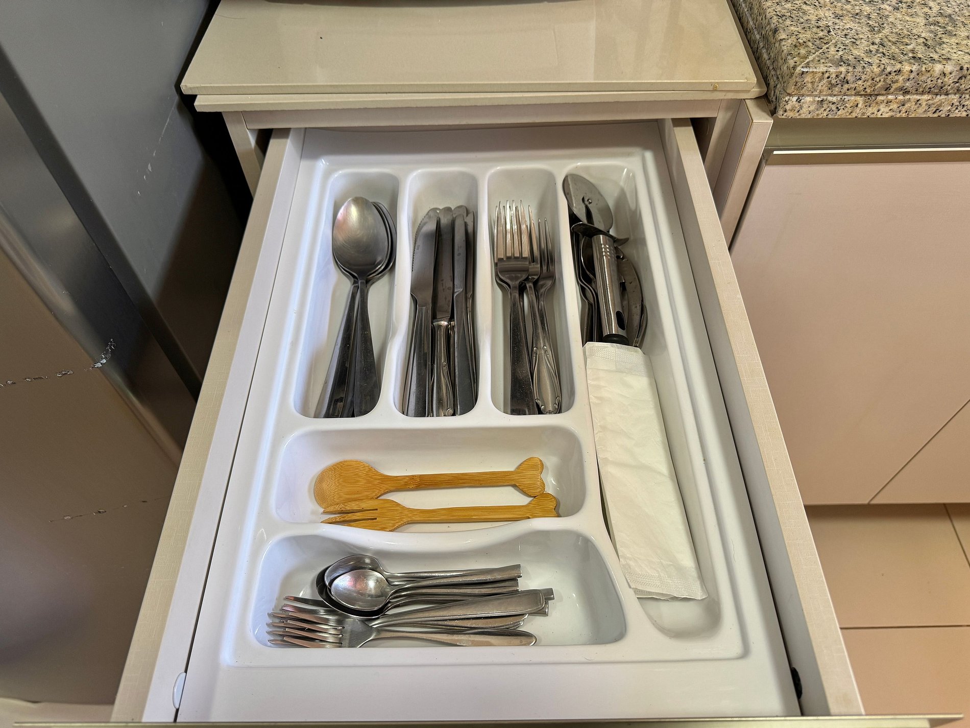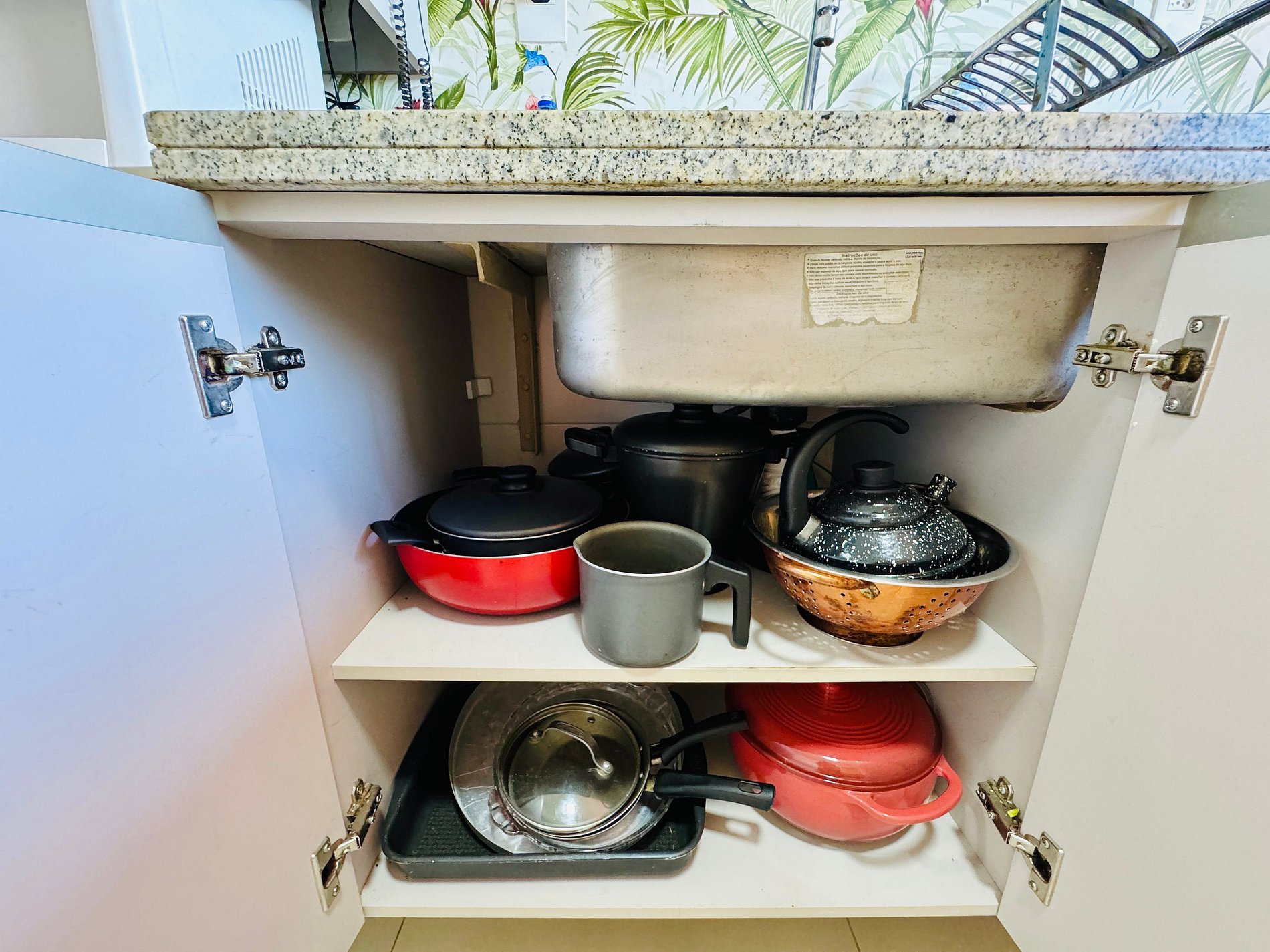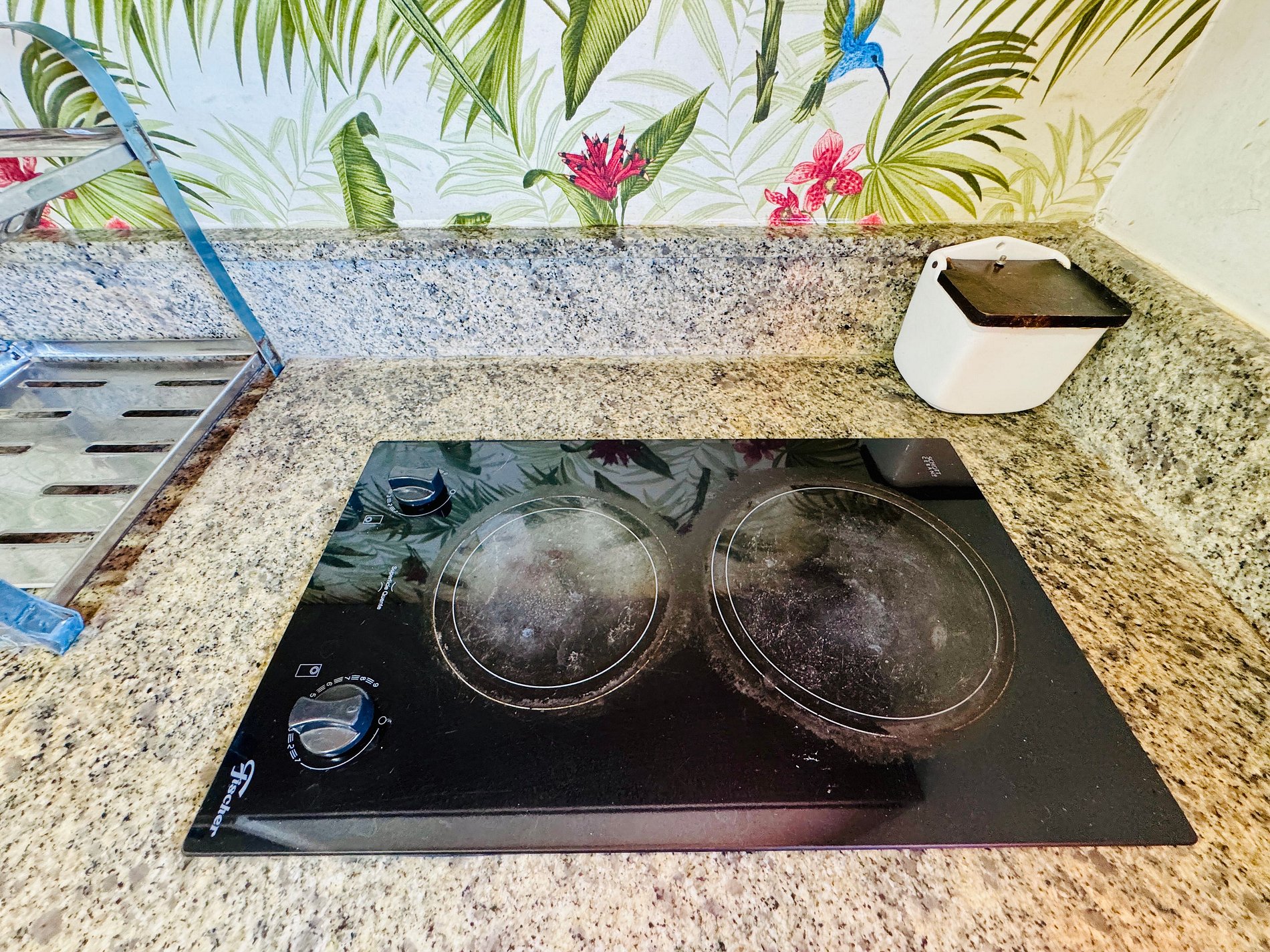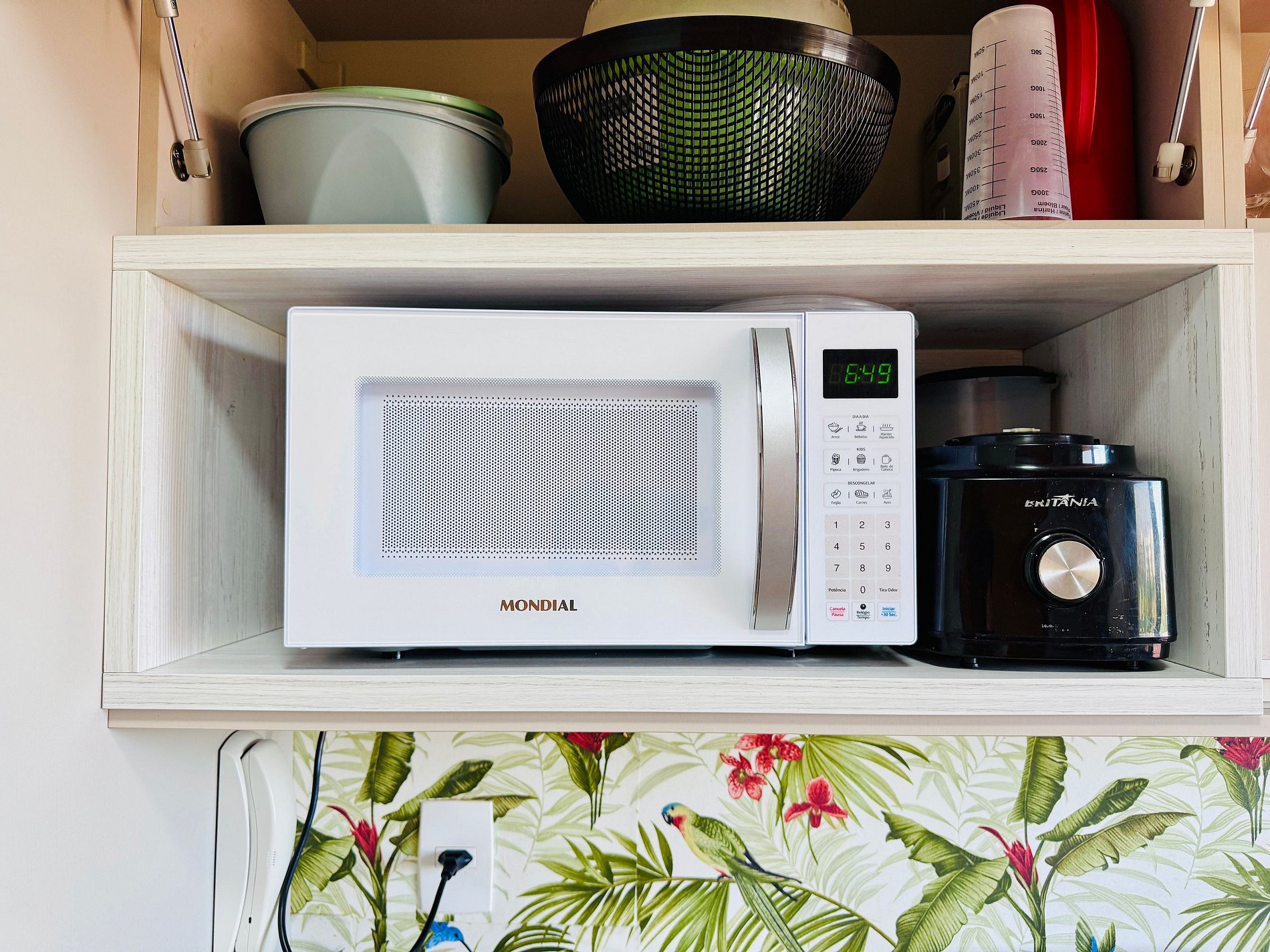 - Cozinha equipada com geladeira, micro-ondas, fogão com forno, cafeteira, liquidificador, sanduicheira, filtro de água (reposição do garrafão feita pelo hóspede) e utensílios diversos;