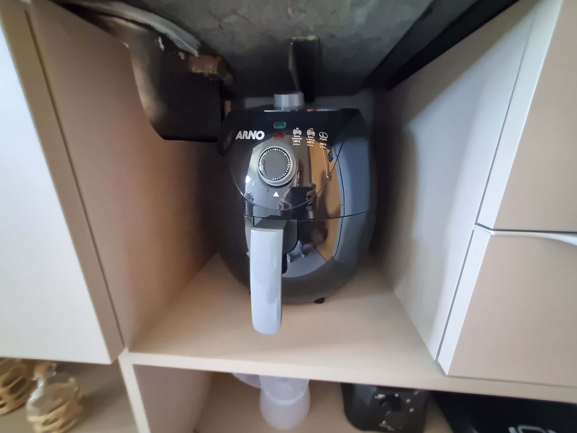 - Cozinha / Copa: Geladeira, cooktop elétrico, micro-ondas, airfry, sanduicheira, liquidificador, cafeteira, chaleira elétrica, cuscuzeira, panelas, pratos, copos, talheres e utensílios diversos