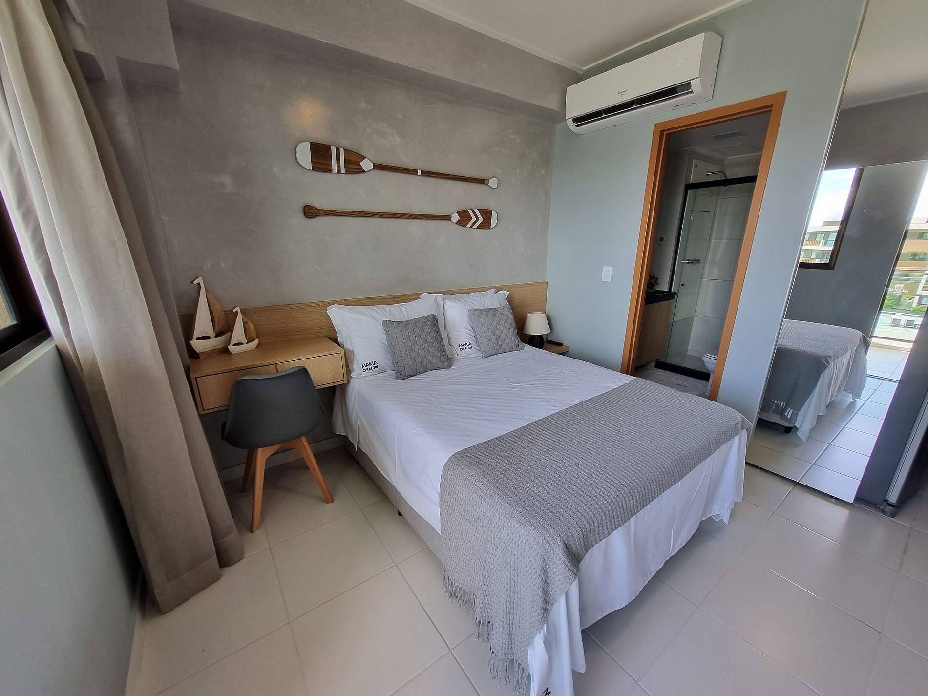 Desfrute do melhor de Muro Alto e Porto de Galinhas no Condomínio Makia! Flat moderno a 300m da praia e perto das piscinas naturais do Pontal do Cupe. Acomoda até 5 pessoas, com cama de casal com bicama e sofá-cama de casal. Equipado com Wi-Fi, Smart TV, ar-condicionado e cozinha compacta. O condomínio estilo resort oferece mais de 10 piscinas, restaurante, loja de conveniência 24hs, rooftop, academia, brinquedoteca, campo de futebol e recepção 24h. Conforto e lazer garantidos para sua estadia!