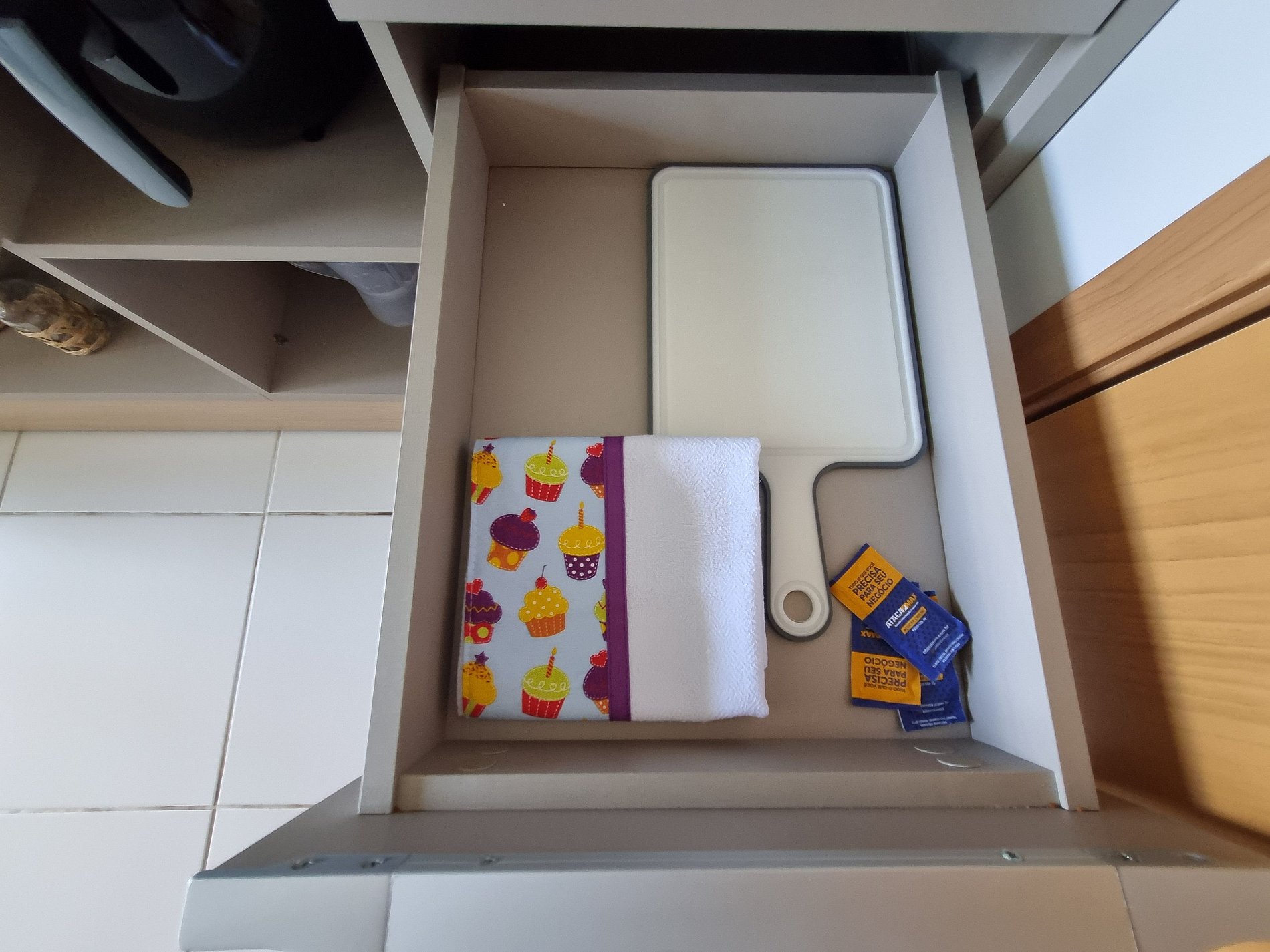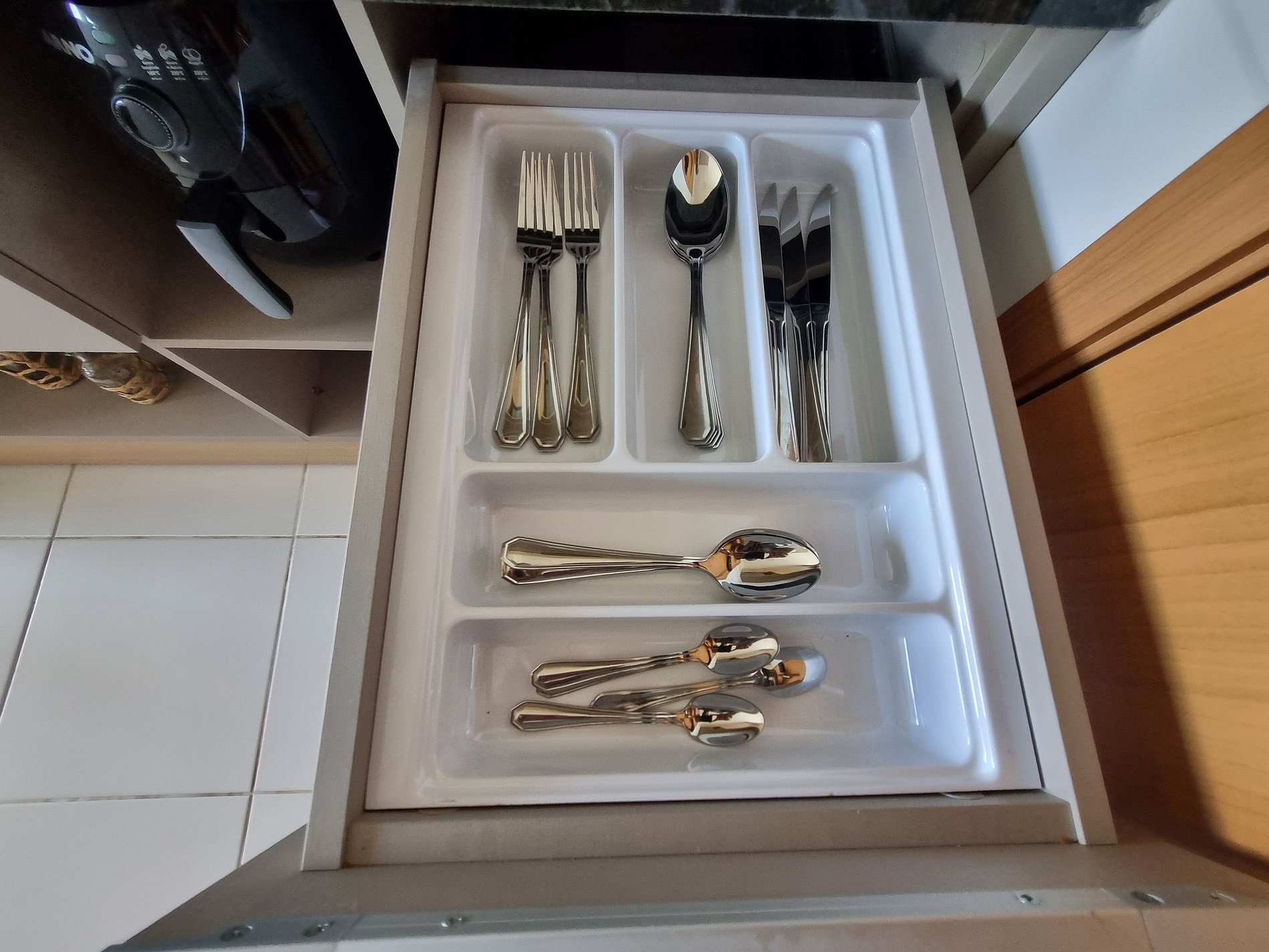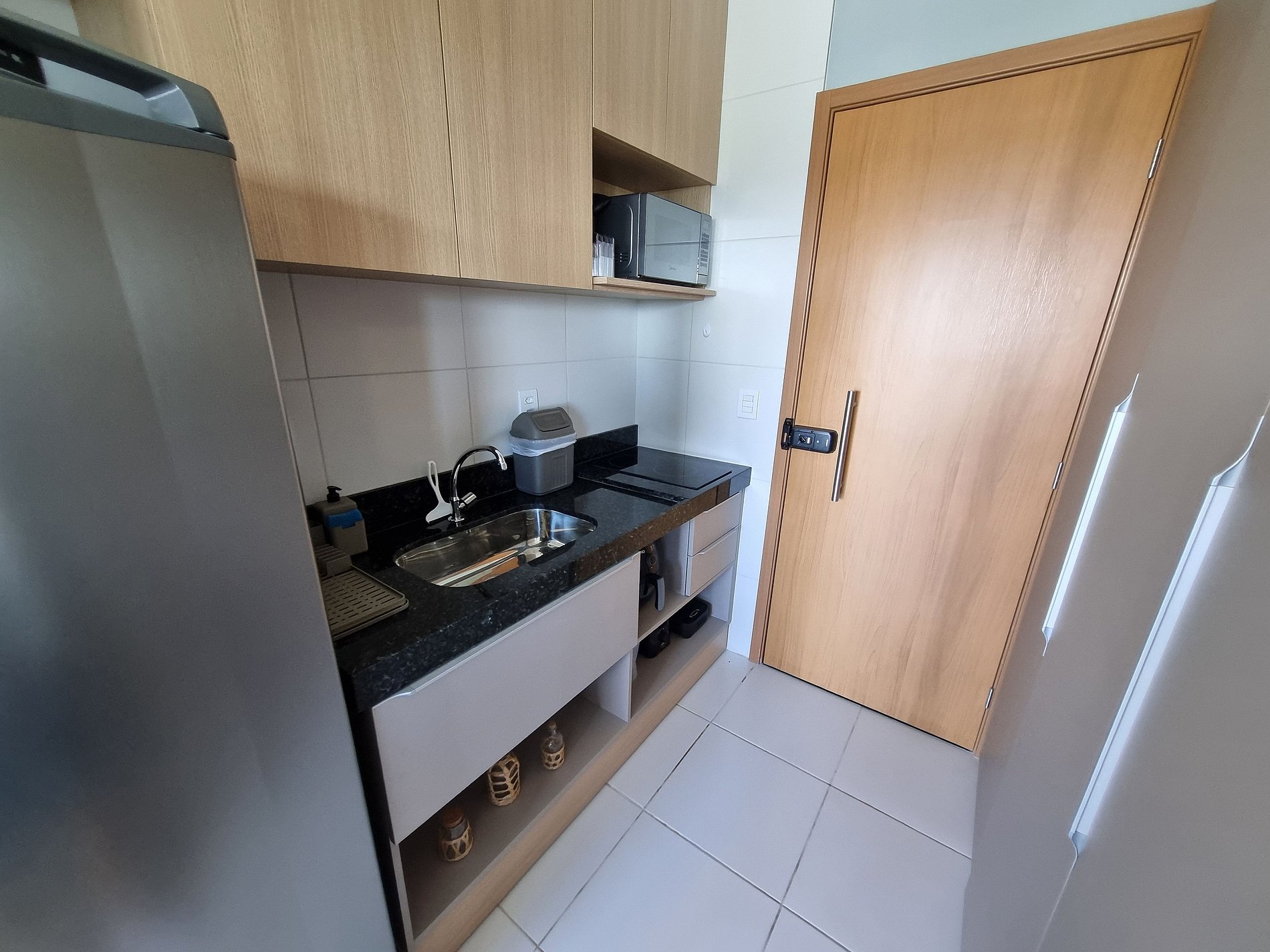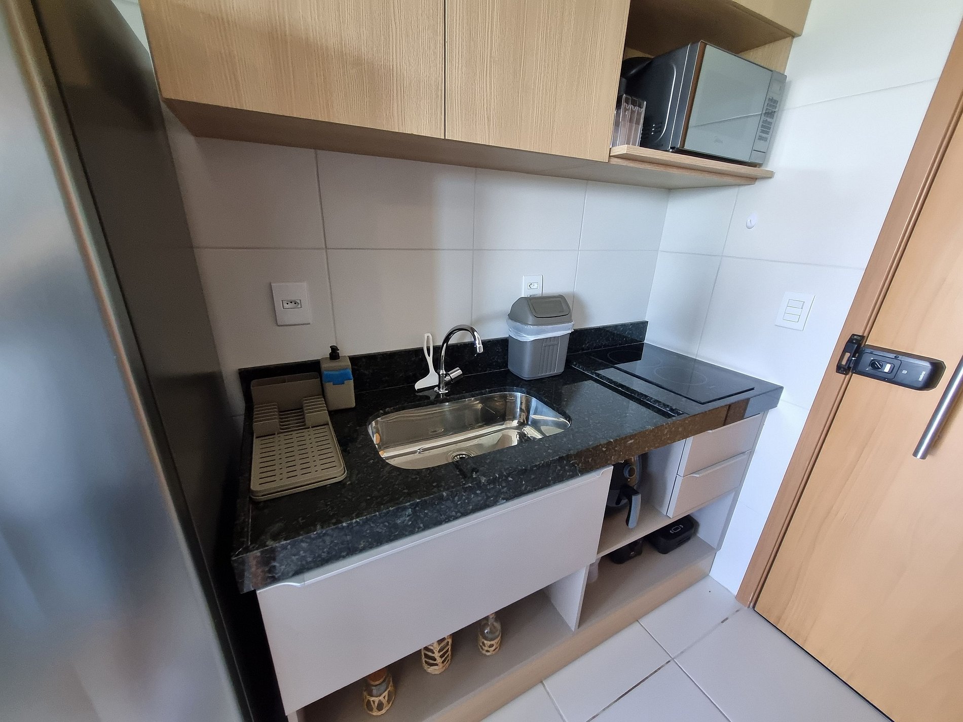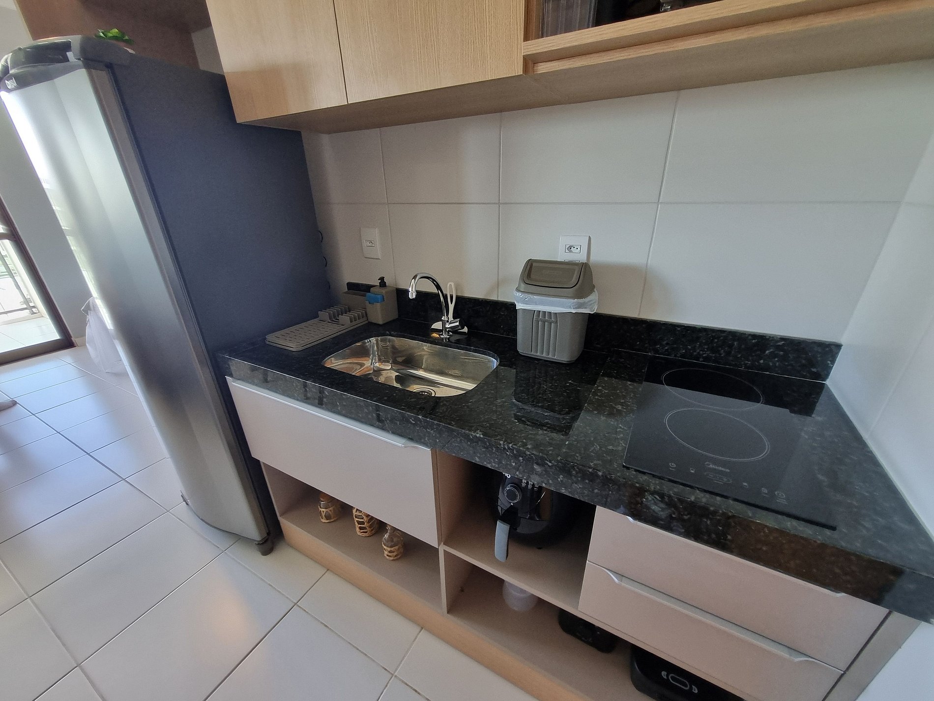- Cozinha / Copa: Geladeira, cooktop elétrico, micro-ondas, airfry, sanduicheira, liquidificador, cafeteira, chaleira elétrica, cuscuzeira, panelas, pratos, copos, talheres e utensílios diversos