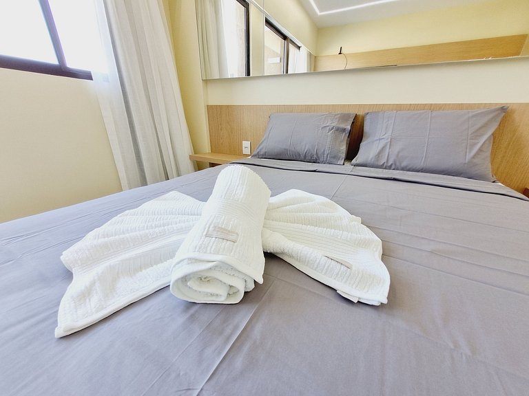 - São disponibilizados roupas de cama e banho de qualidade hoteleira (roupas de cama e toalhas extras são cobrados) no check-in.