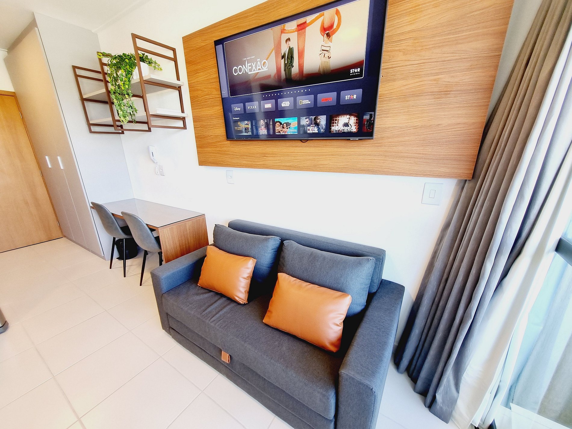 - Comodidades: Ar-condicionado; Wi-Fi; Smart TV com os principais serviços de stream (com login e senha do hóspede), 1 vaga no estacionamento descoberta