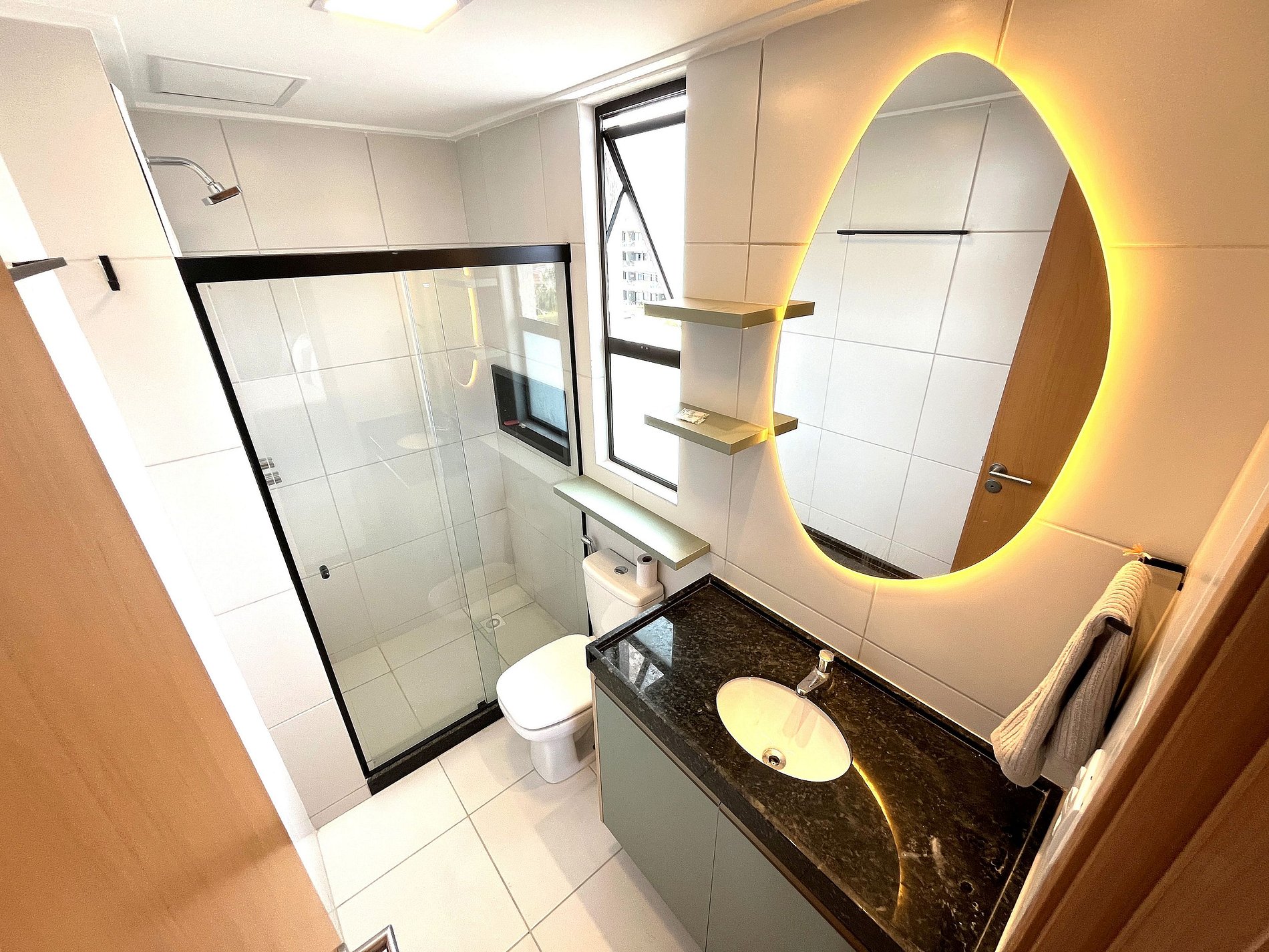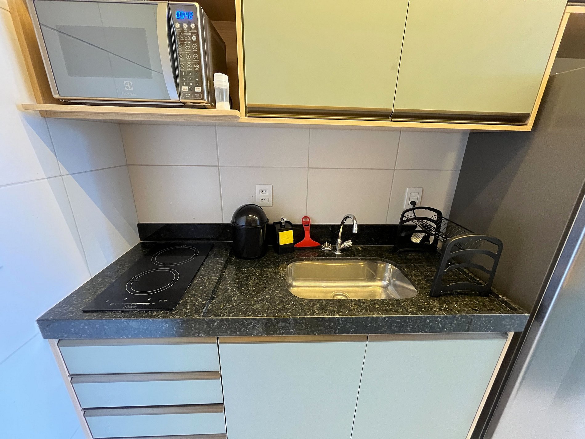 O apartamento totalmente mobiliado proporciona um ambiente confortável e funcional, equipado com todas as comodidades essenciais para sua estadia.