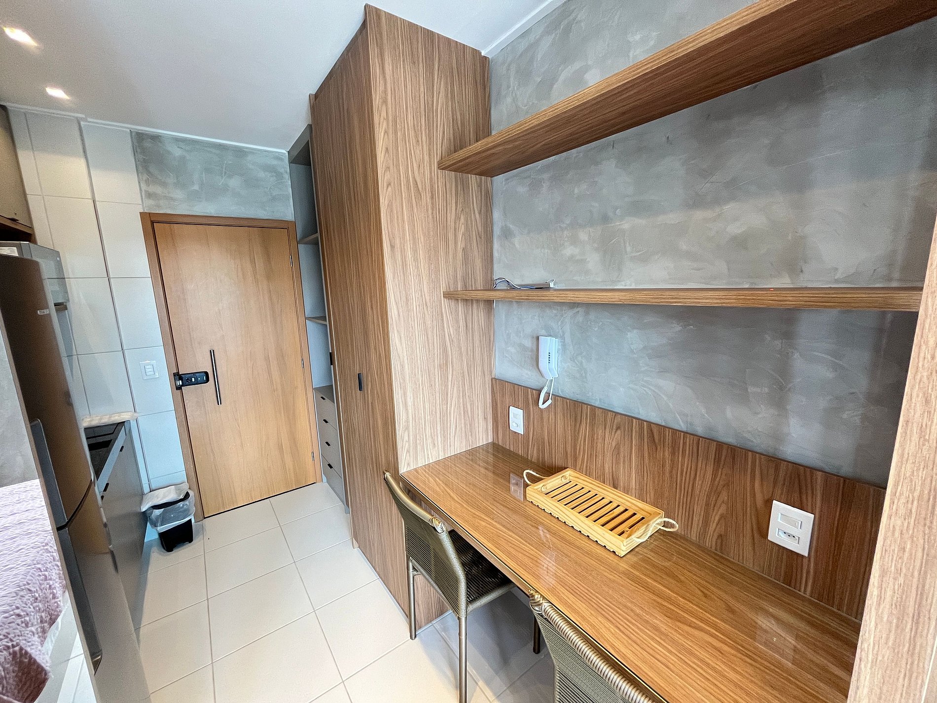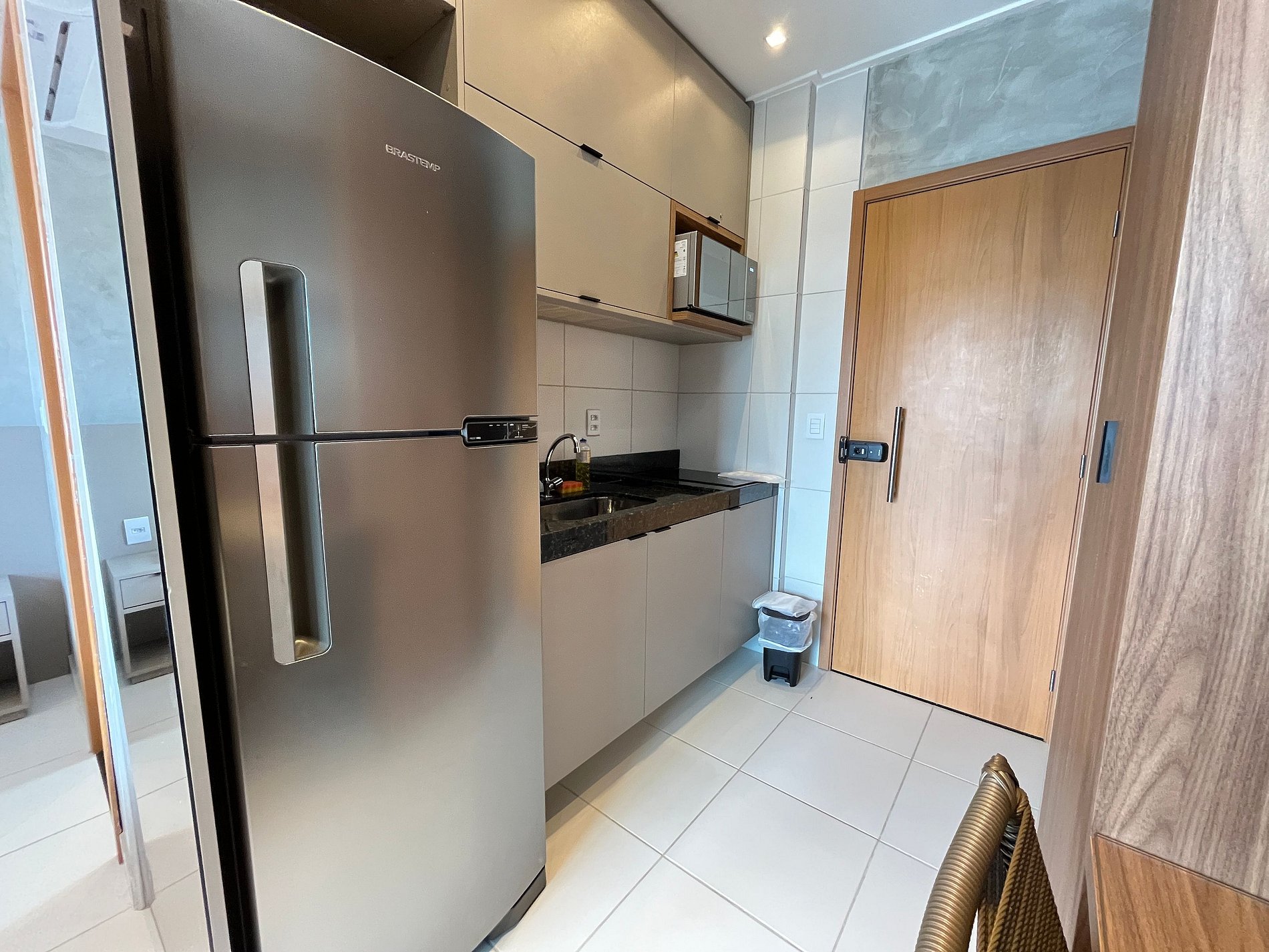 O apartamento totalmente mobiliado proporciona um ambiente confortável e funcional, equipado com todas as comodidades essenciais para sua estadia.