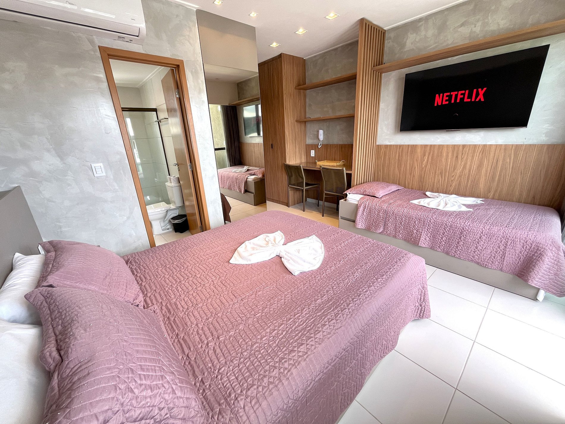 - Comodidades: Ar-condicionado; Wi-Fi; Smart TV com os principais serviços de stream (com login e senha do hóspede), 1 vaga no estacionamento descoberta