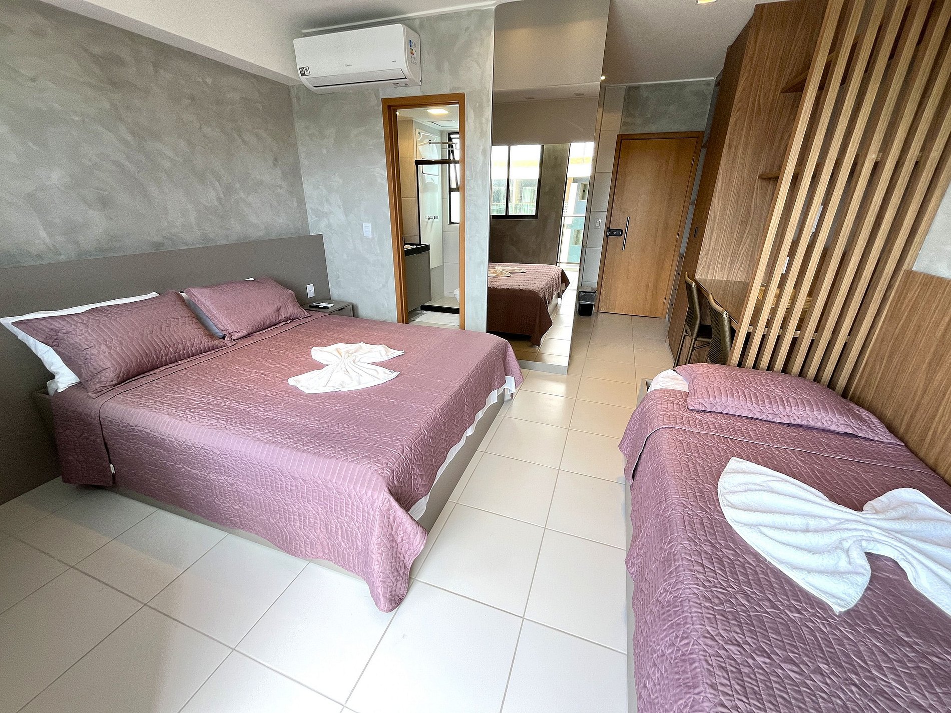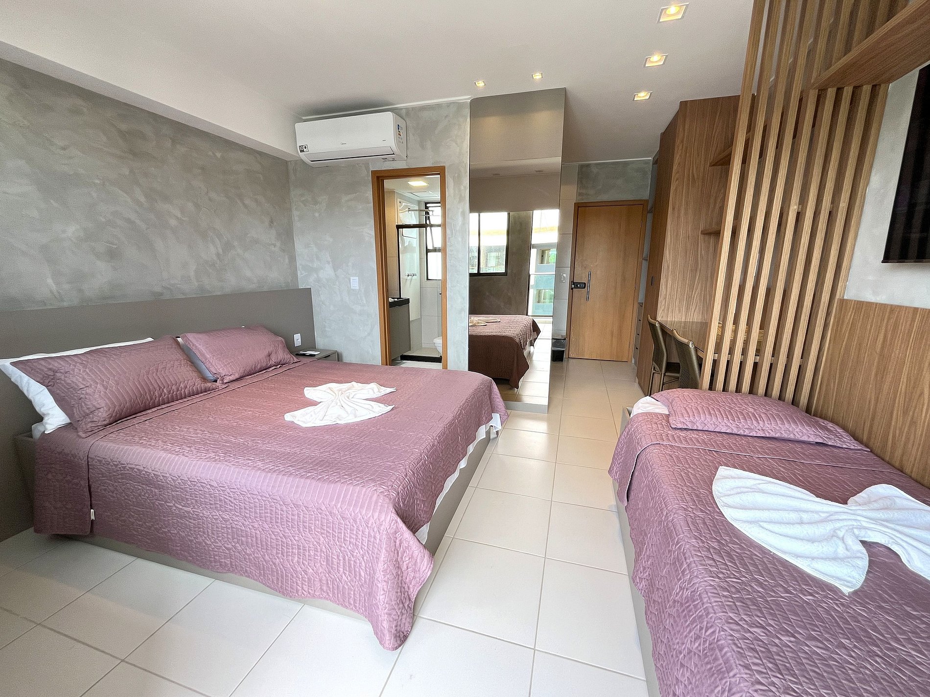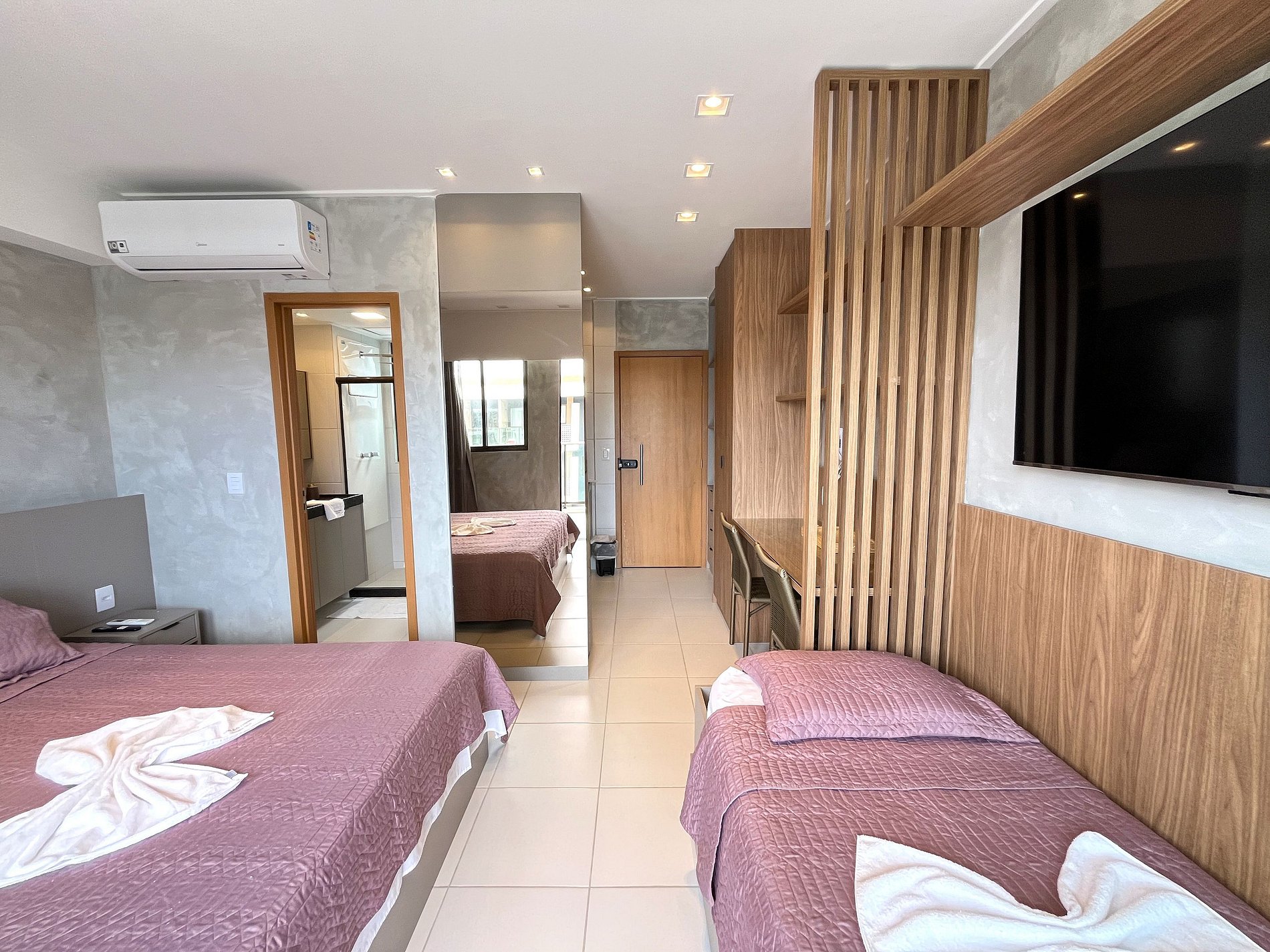 • Acomodação: Acomoda até 5 pessoas (incluindo bebês), com uma cama de casal com bicama e um sofá-cama de casal. Equipado com ar-condicionado, Smart TV, Wi-Fi, cozinha completa e varanda com vista para as piscinas.