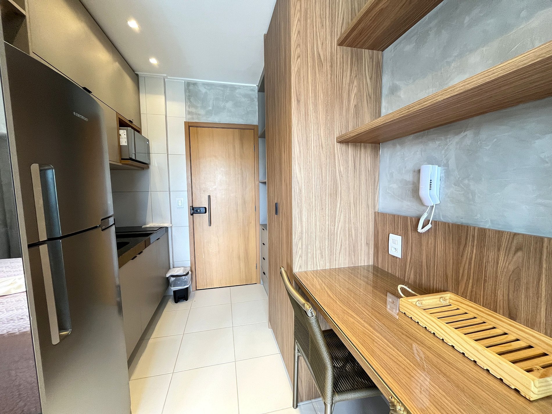 O apartamento totalmente mobiliado proporciona um ambiente confortável e funcional, equipado com todas as comodidades essenciais para sua estadia.