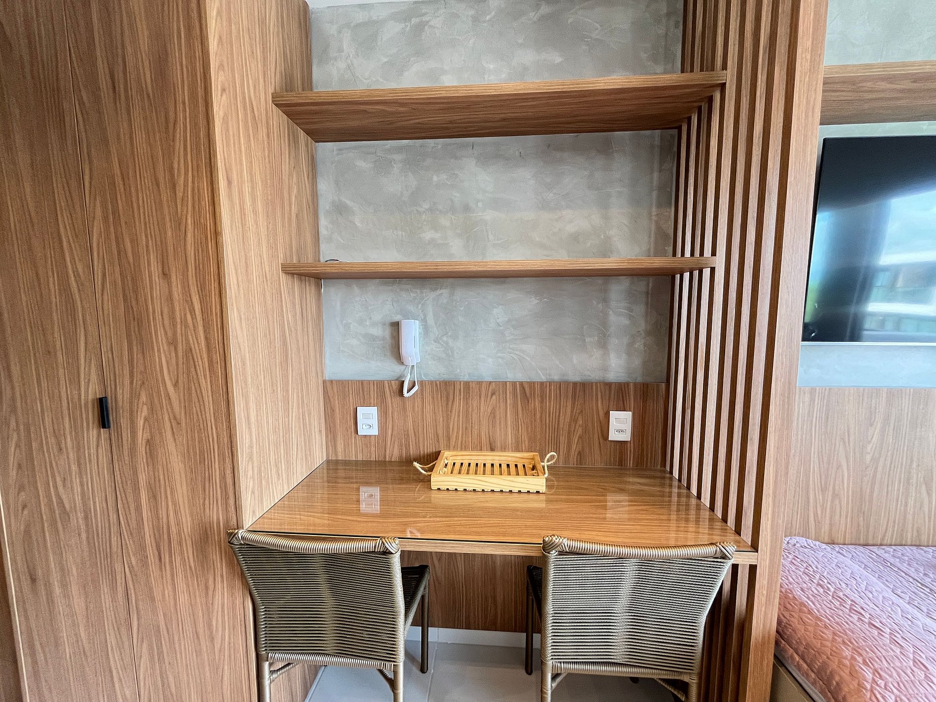 Tomada elétrica próxima à cama