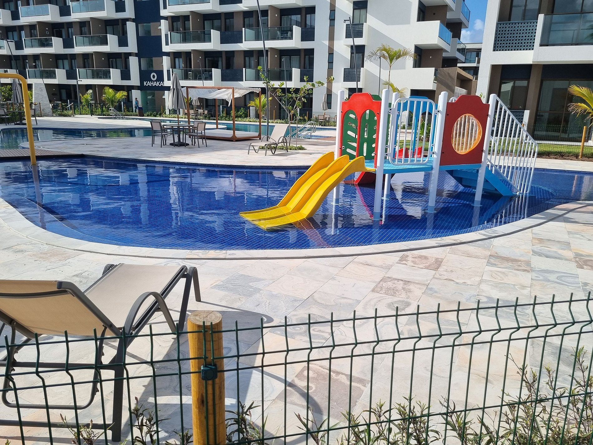 - Estrutura e Lazer: Recepção 24h, mais de 10 piscinas, piscina infantil com brinquedão, restaurante e bar, loja de conveniência 24hs (mini mercado), rooftop, academia, brinquedoteca, salão de jogos, campo de futebol, coworking, salão de festas (mediante agendamento prévio), lavanderia OMO, Wi-Fi gratuito nas áreas comuns, elevadores. Estrutura de cadeiras e guarda-sóis na praia da frente (300m) de sexta a domingo, exceto se a maré estiver alta.