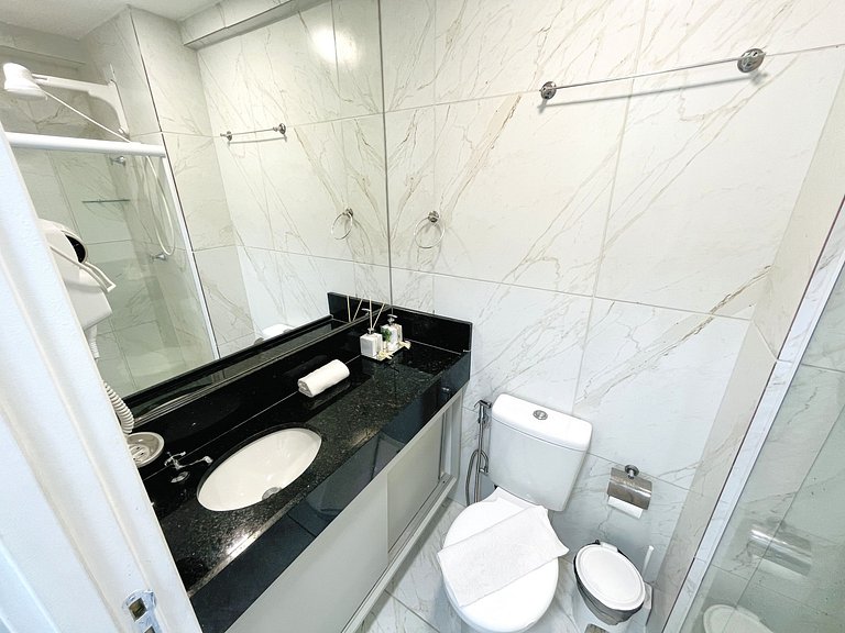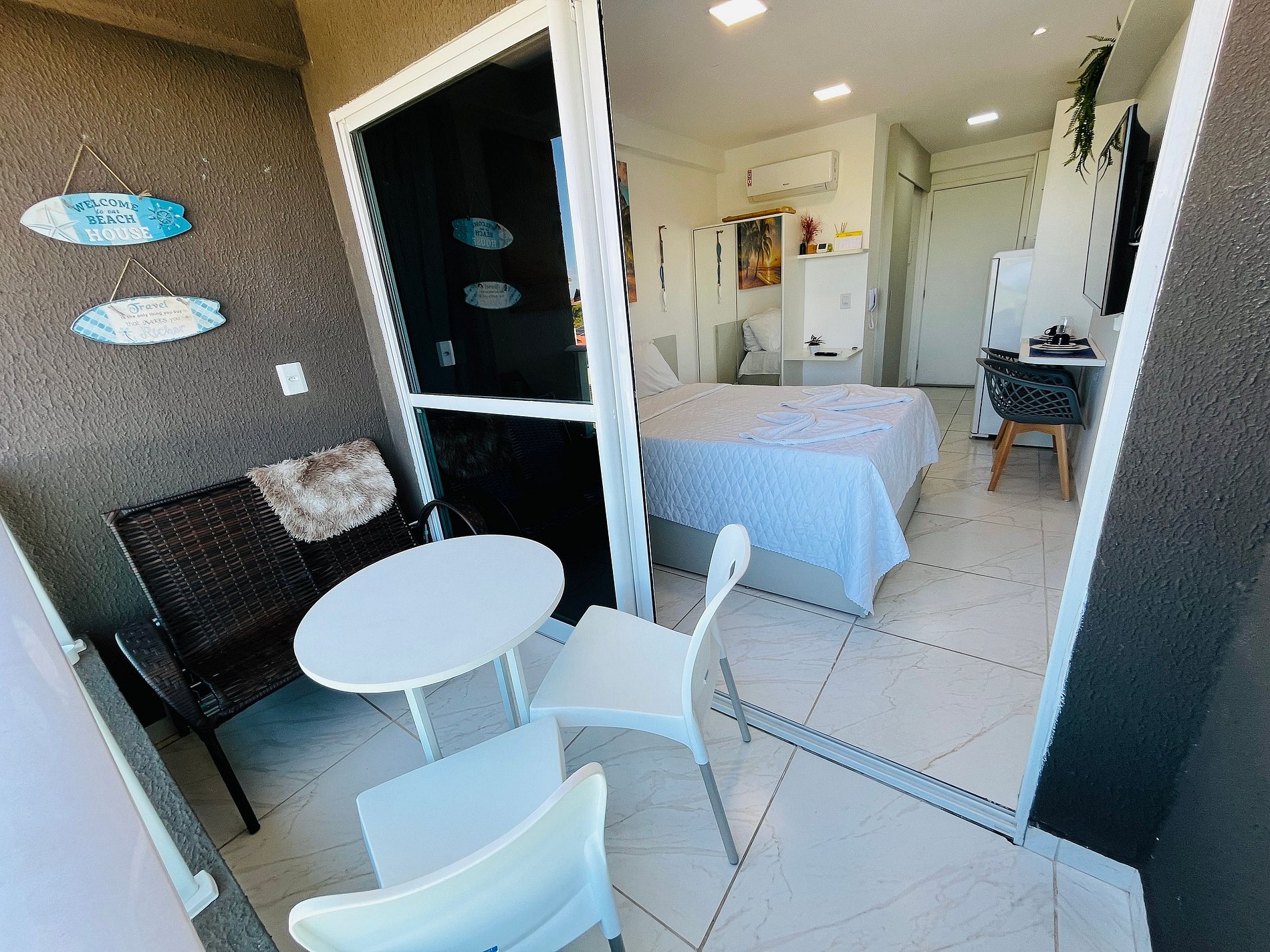 Além disso, o condomínio oferece infraestrutura com piscinas e área de convivência em seu rooftop para você relaxar após um dia de praia.
