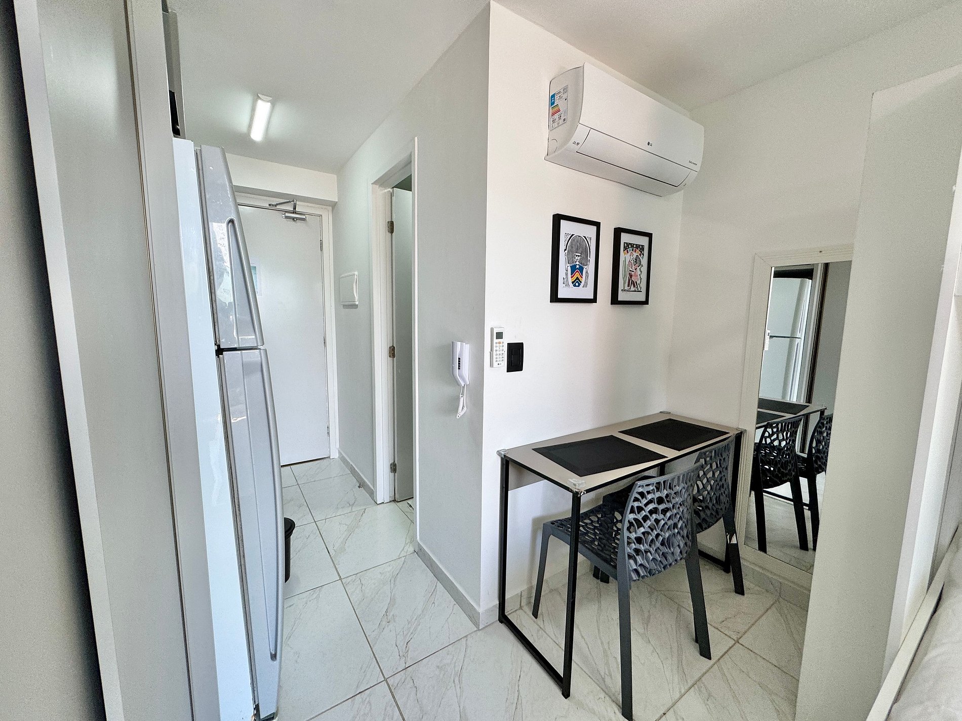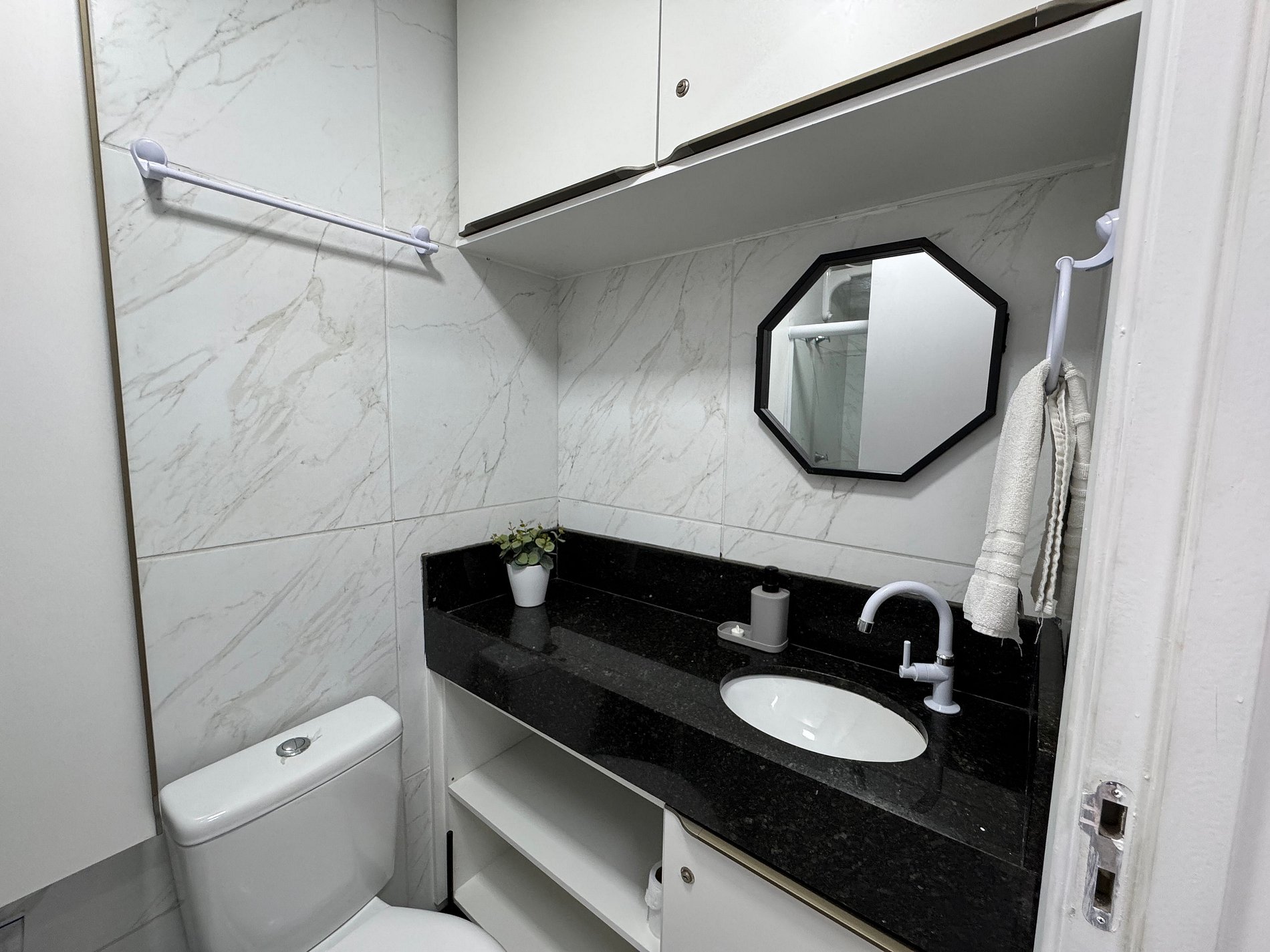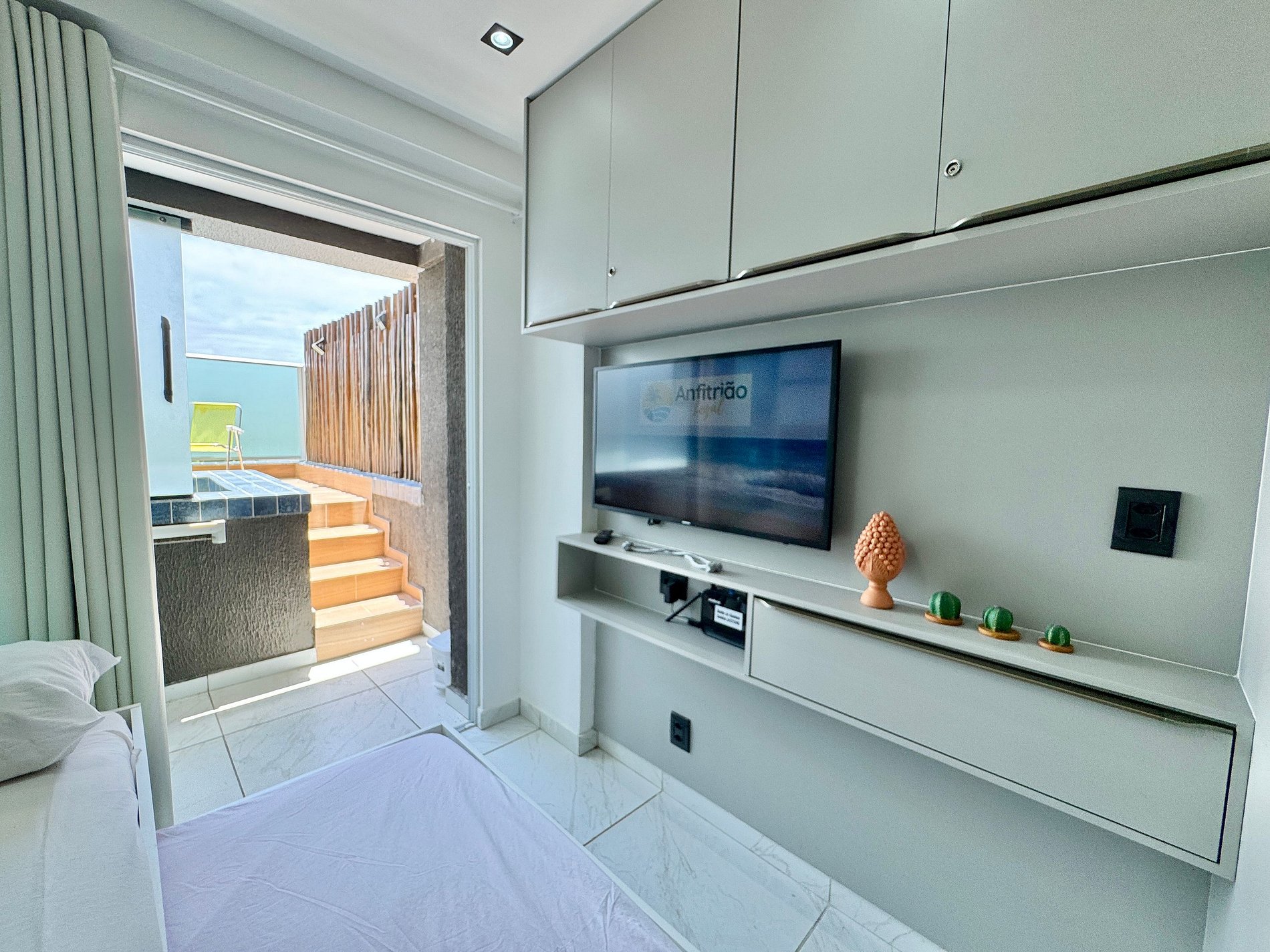 Além disso, o condomínio oferece infraestrutura com piscinas e área de convivência em seu rooftop para você relaxar após um dia de praia.