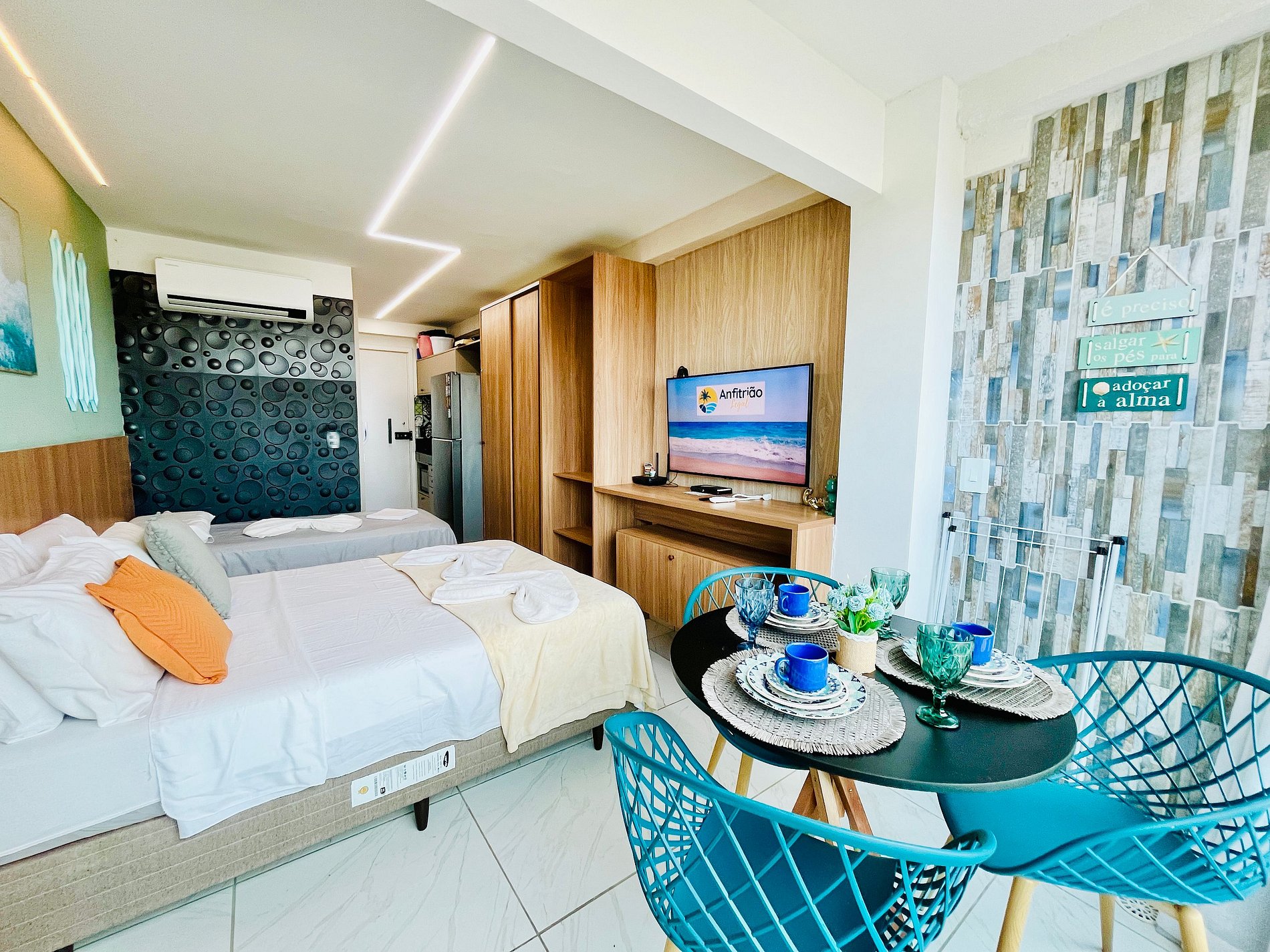 Além disso, o condomínio oferece infraestrutura com piscinas e área de convivência em seu rooftop para você relaxar após um dia de praia.