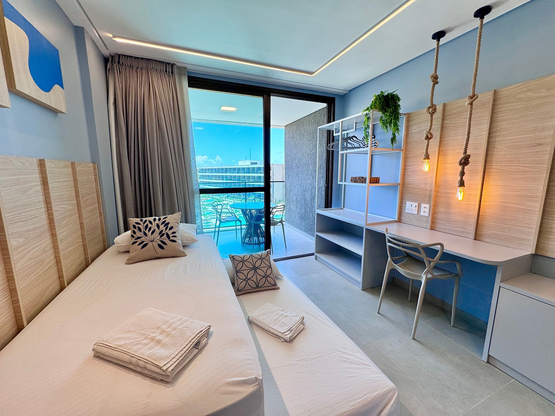 Desfrute do melhor de Muro Alto e Porto de Galinhas no Condomínio Beach Class Solare! Flat moderno a 300m da praia e perto das piscinas naturais do Pontal do Cupe. Acomoda até 4 pessoas, com cama de casal e cama de solteiro com bicama. Equipado com Wi-Fi, Smart TV, ar-condicionado e cozinha compacta. O condomínio estilo resort oferece piscinas, restaurante, rooftop, academia, brinquedoteca, campo de futebol e recepção 24h. Conforto e lazer garantidos para sua estadia!