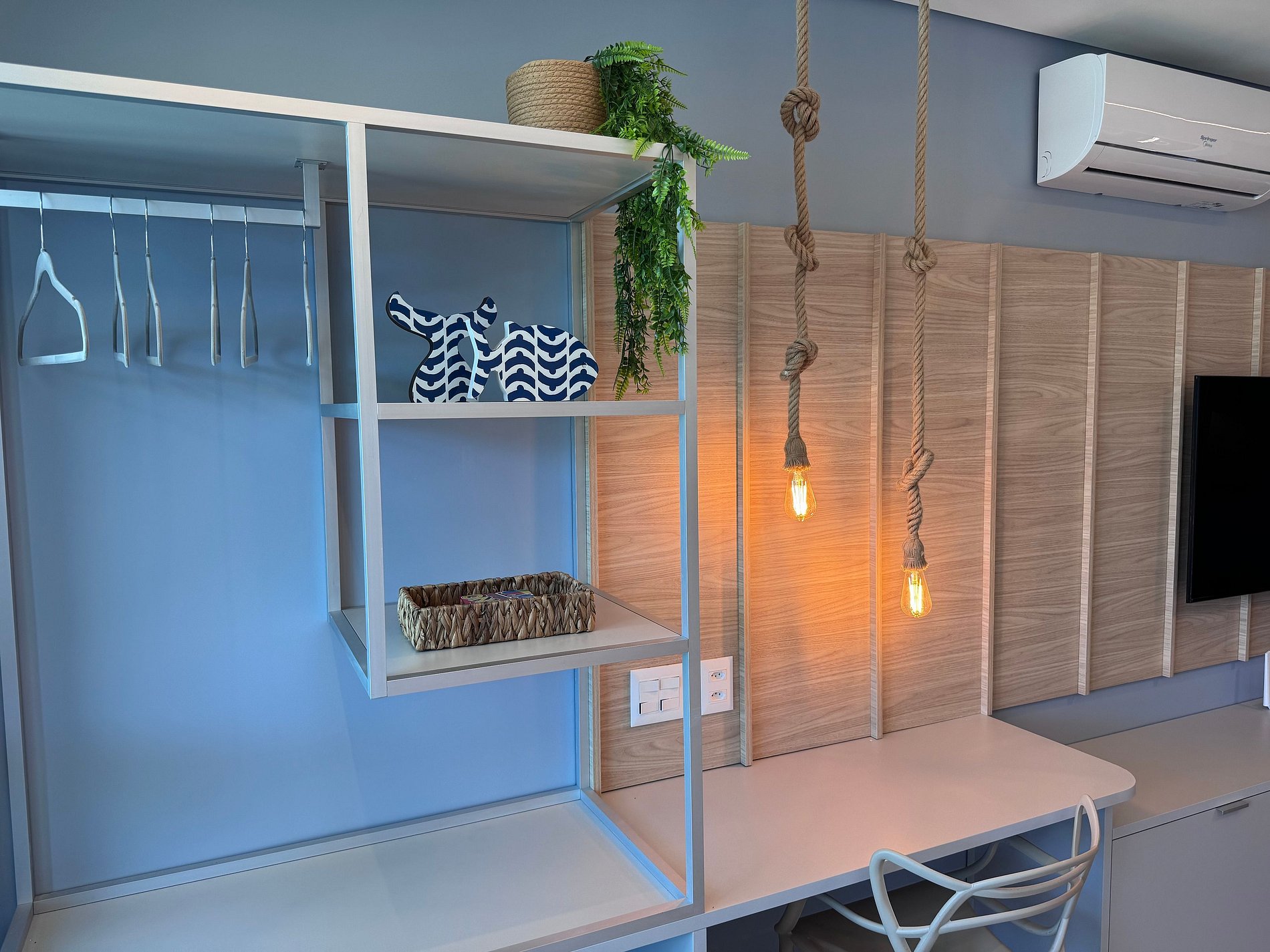 O apartamento totalmente mobiliado proporciona um ambiente confortável e funcional, equipado com todas as comodidades essenciais para sua estadia.