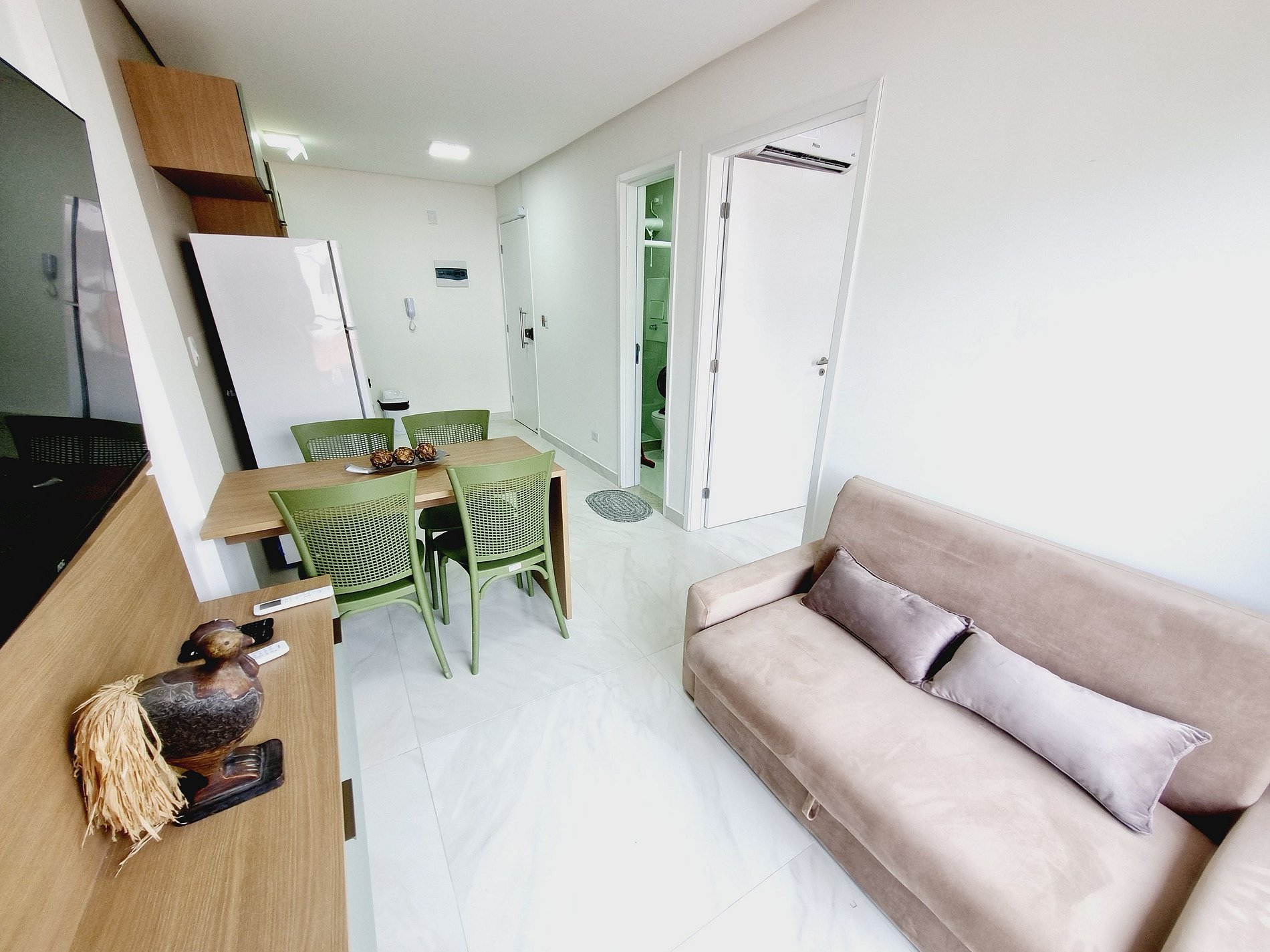 O apartamento totalmente mobiliado oferece um ambiente acolhedor e funcional, equipado com todas as comodidades necessárias para uma estadia confortável: