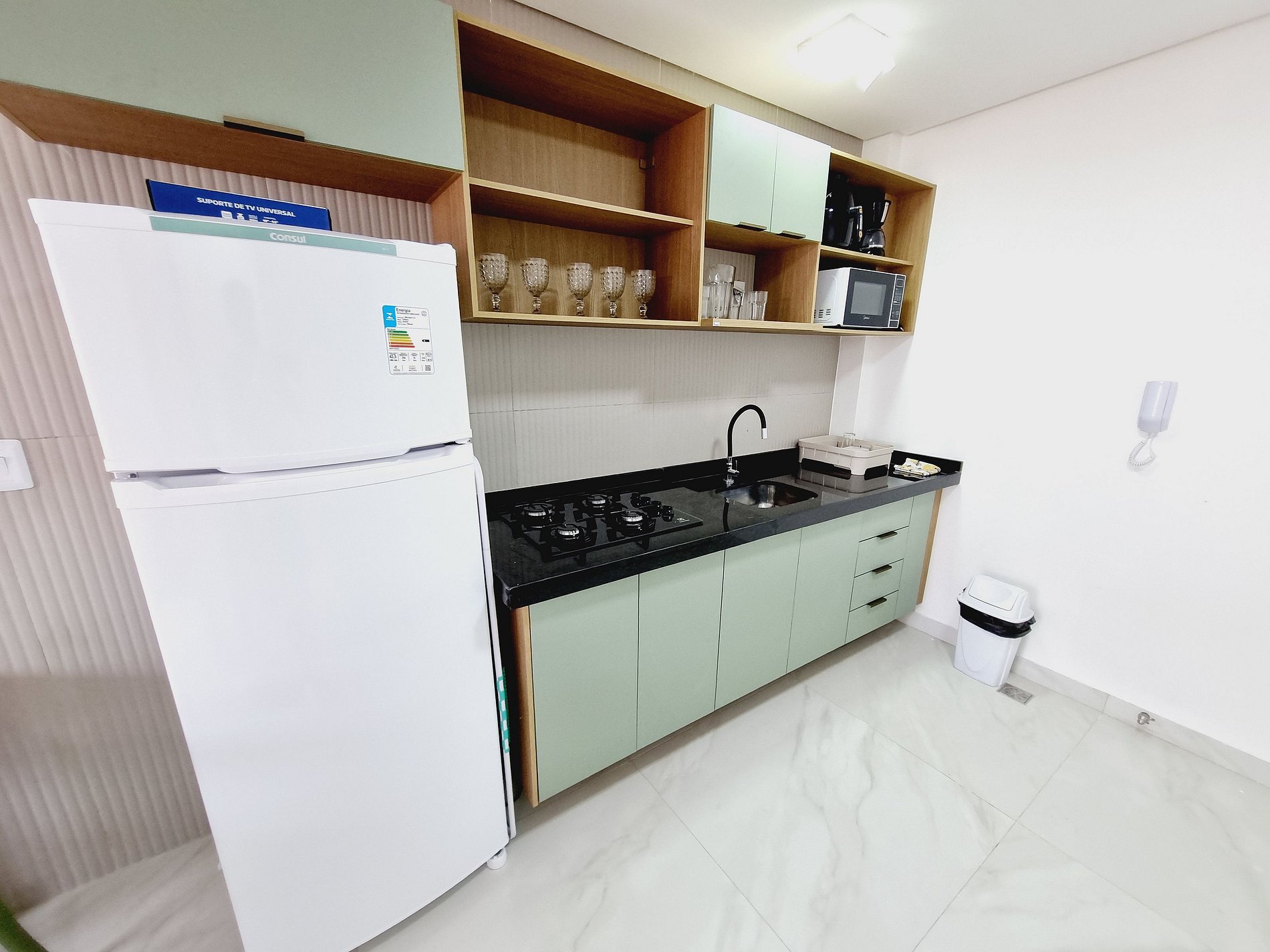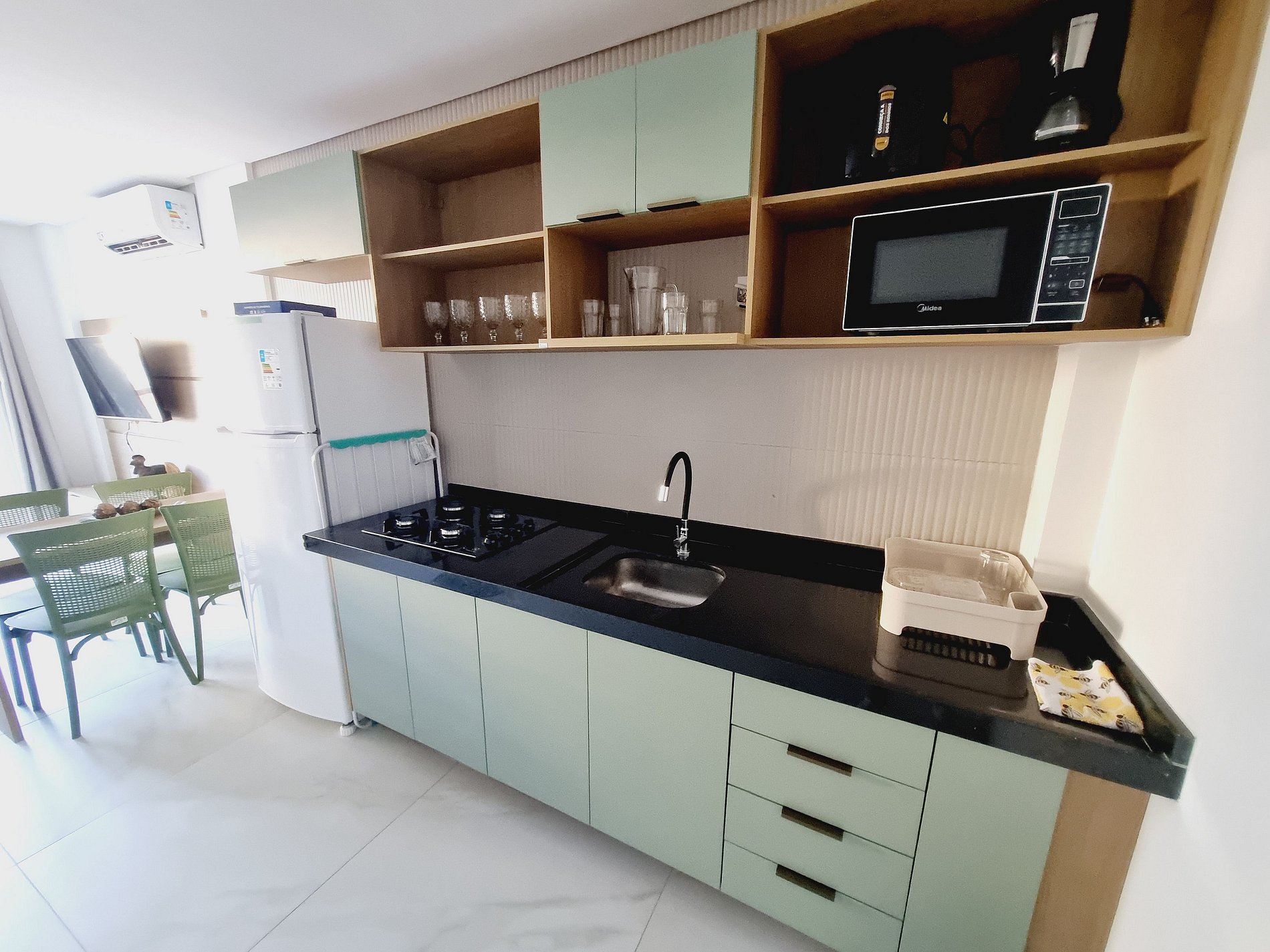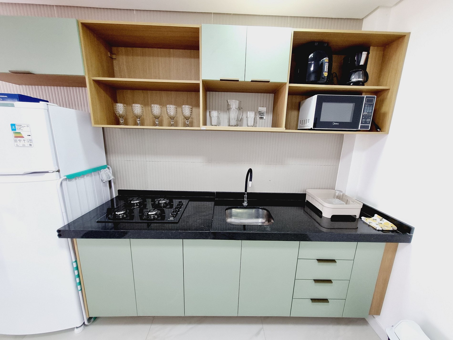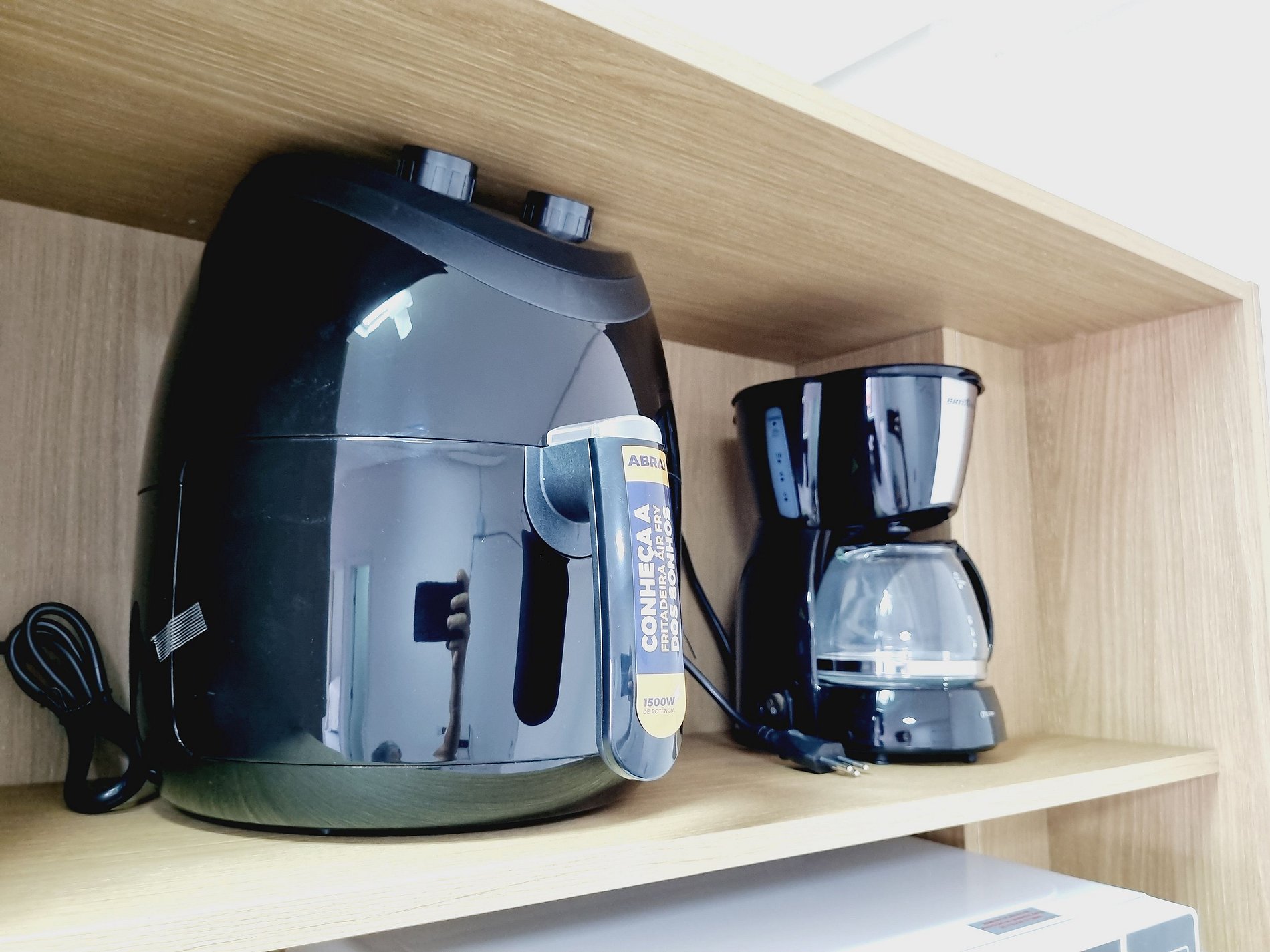• Cozinha completa: geladeira, micro-ondas, fogão a gás, airfry, cafeteira elétrica, sanduicheira elétrica, liquidificador e jogos de panelas. Copos, taças de vinho, xícaras, pratos, faças, garfos, abridor de vinho entre outros.