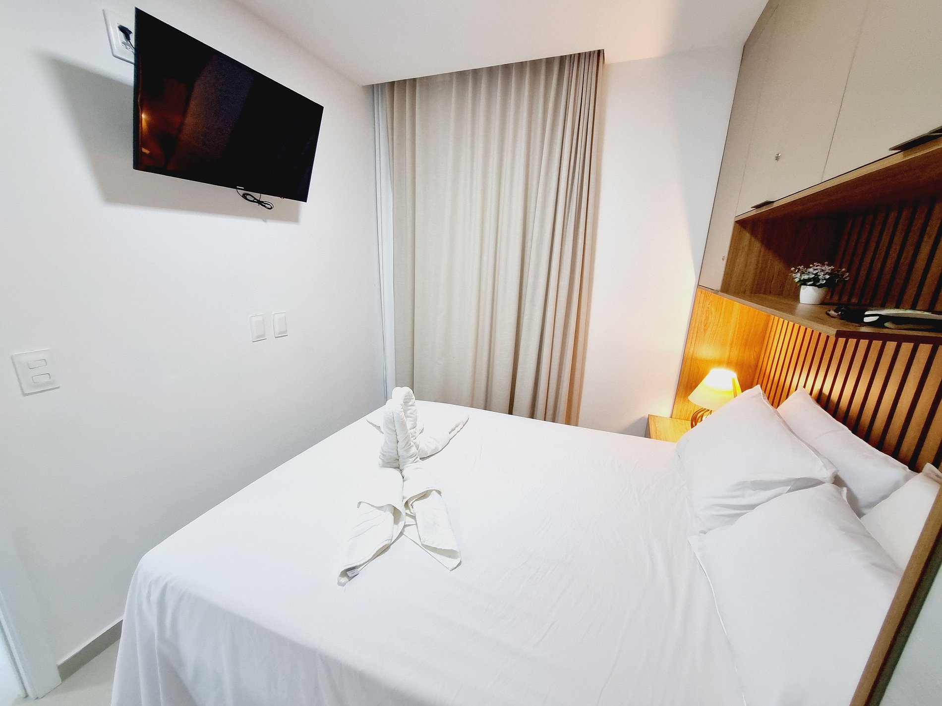 Normas do Flat (não é permitido): 1. Fumar. 2. Entrada de animais domésticos. 3. Realização de eventos. Regras do Condomínio (não é permitido): 1. Utilizar churrasqueiras de carvão ou similares que emitam fumaça. 2. Consumir vidro na área comum da piscina. 3. Consumir alimentos e bebidas dentro da piscina. 4. Estender roupas, toalhas ou qualquer objeto na janela ou varanda. 5. Fumar na área dentro do condomínio. Solicitações: Ao deixar o flat, pedimos gentilmente que desliguem o ar-condicionado, TV e luzes.
