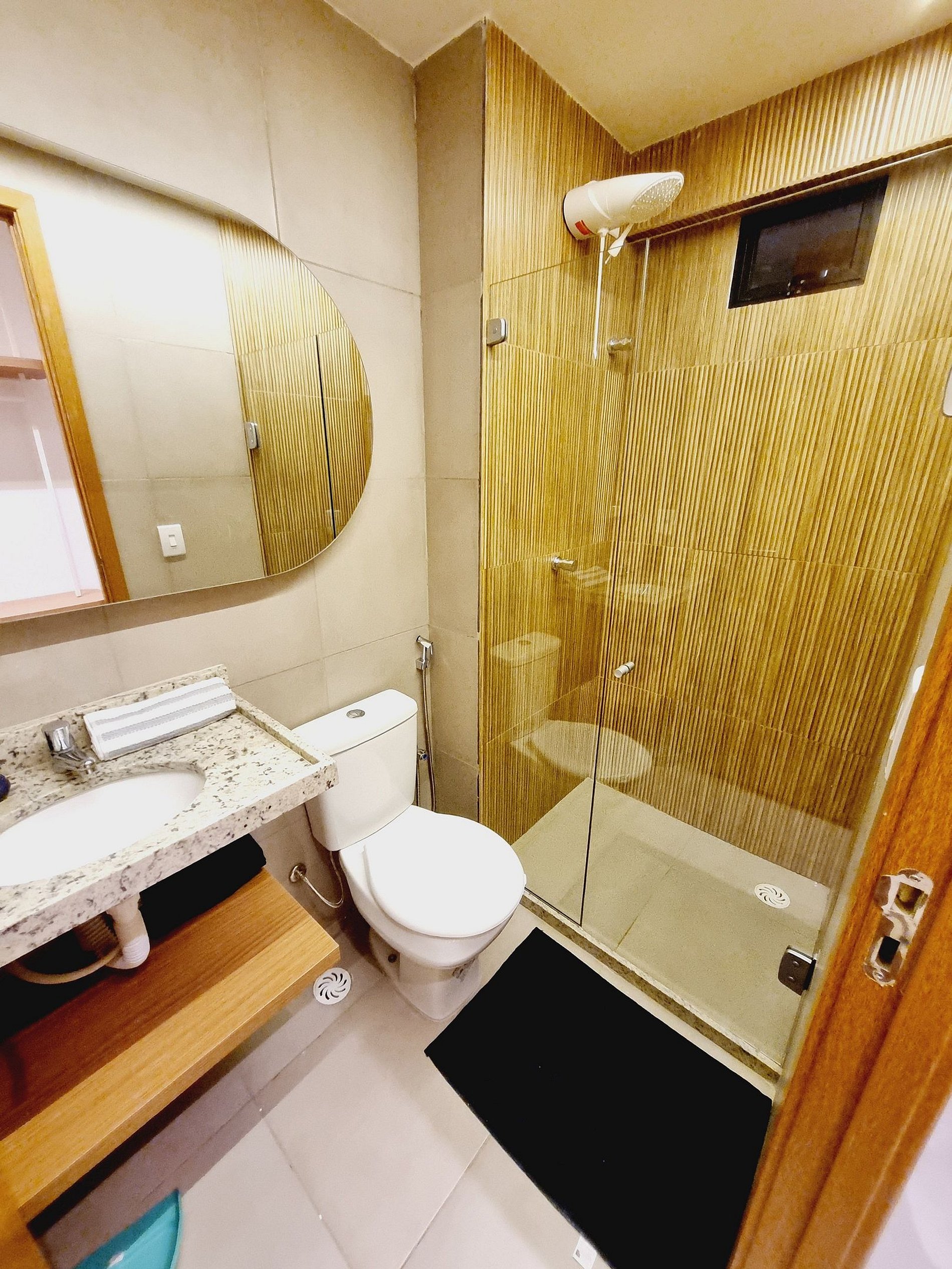 O Flat no condomínio Cupe Exclusive na praia do Cupe em Porto de Galinhas, conta com Rooftop, 2 experiências de piscinas (borda infinita e water play), espaço gourmet, estacionamento, elevador e solarium com vista para o nascer e pôr do sol. O charme fica por conta da piscina com vista para o Mar. Apt tipo estúdio possui cama de casal e um sofá cama de casal embaixo, banheiro, cozinha compacta, SmarTV, Wifi e enxoval gratuito.