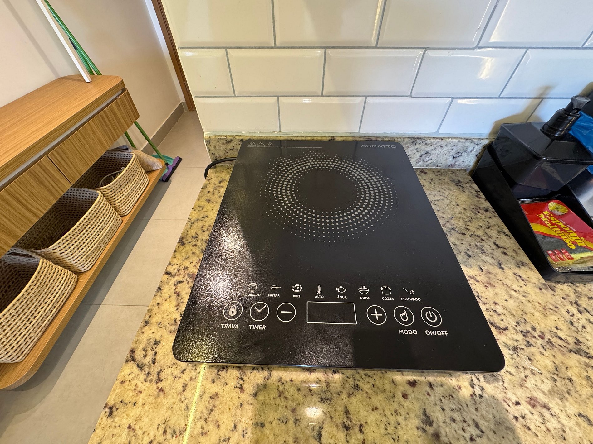 • Fogão Cooktop, Liquidificador, Cafeteira e utensílios de cozinha;