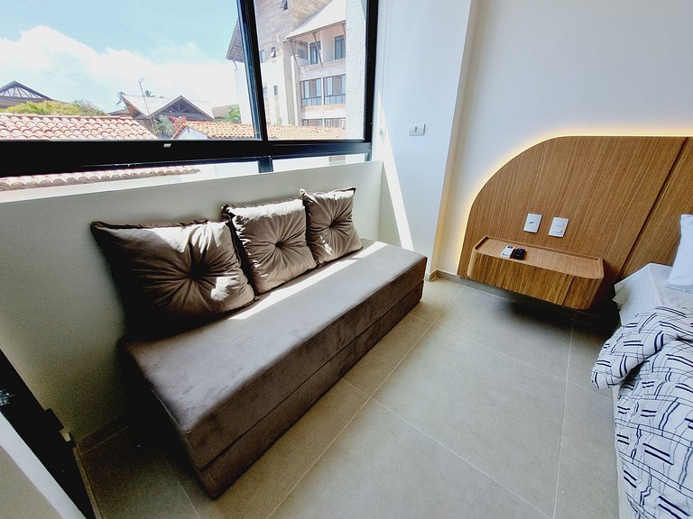 ⌂ Estúdio totalmente mobiliado que oferece as seguintes comodidades aos seus hospedes: