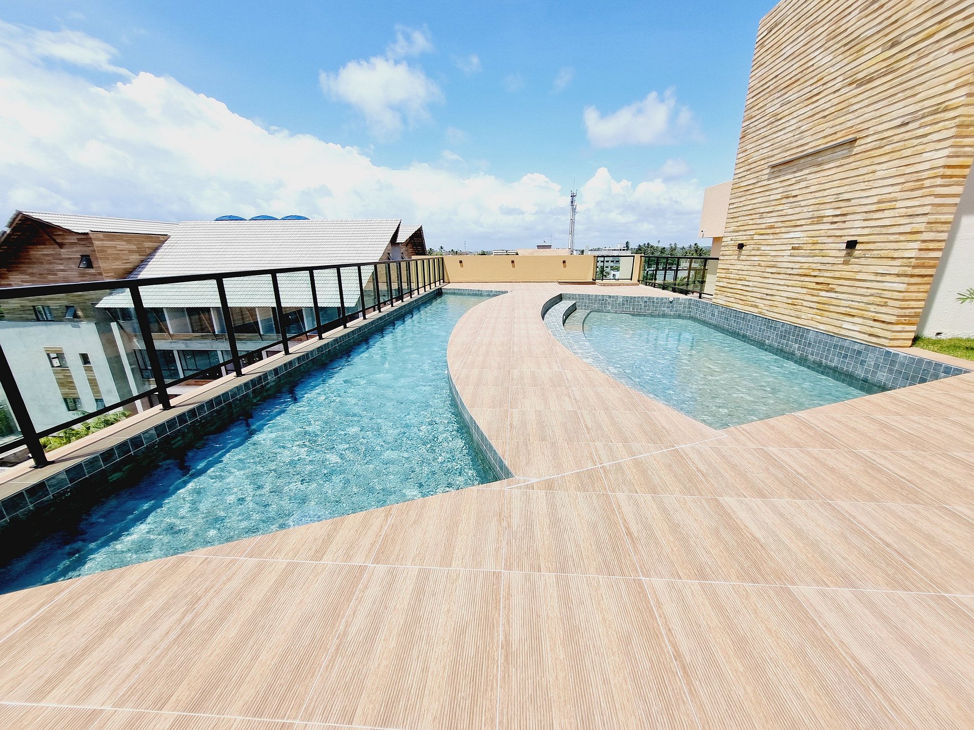 O Flat no condomínio Reserva do Cupe na praia do Cupe em Porto de Galinhas, conta com Rooftop, 2 experiências de piscinas (borda infinita e water play), espaço gourmet, estacionamento, elevador e solarium com vista para o nascer e pôr do sol. O charme fica por conta da piscina com vista para o Mar. Apt tipo estúdio possui cama de casal e um sofá cama de casal embaixo, banheiro, cozinha compacta, SmarTV, Wifi e enxoval gratuito.