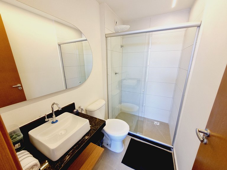 • O apartamento possui fechadura eletrônica. Para abrir você deve a senha enviada para você;