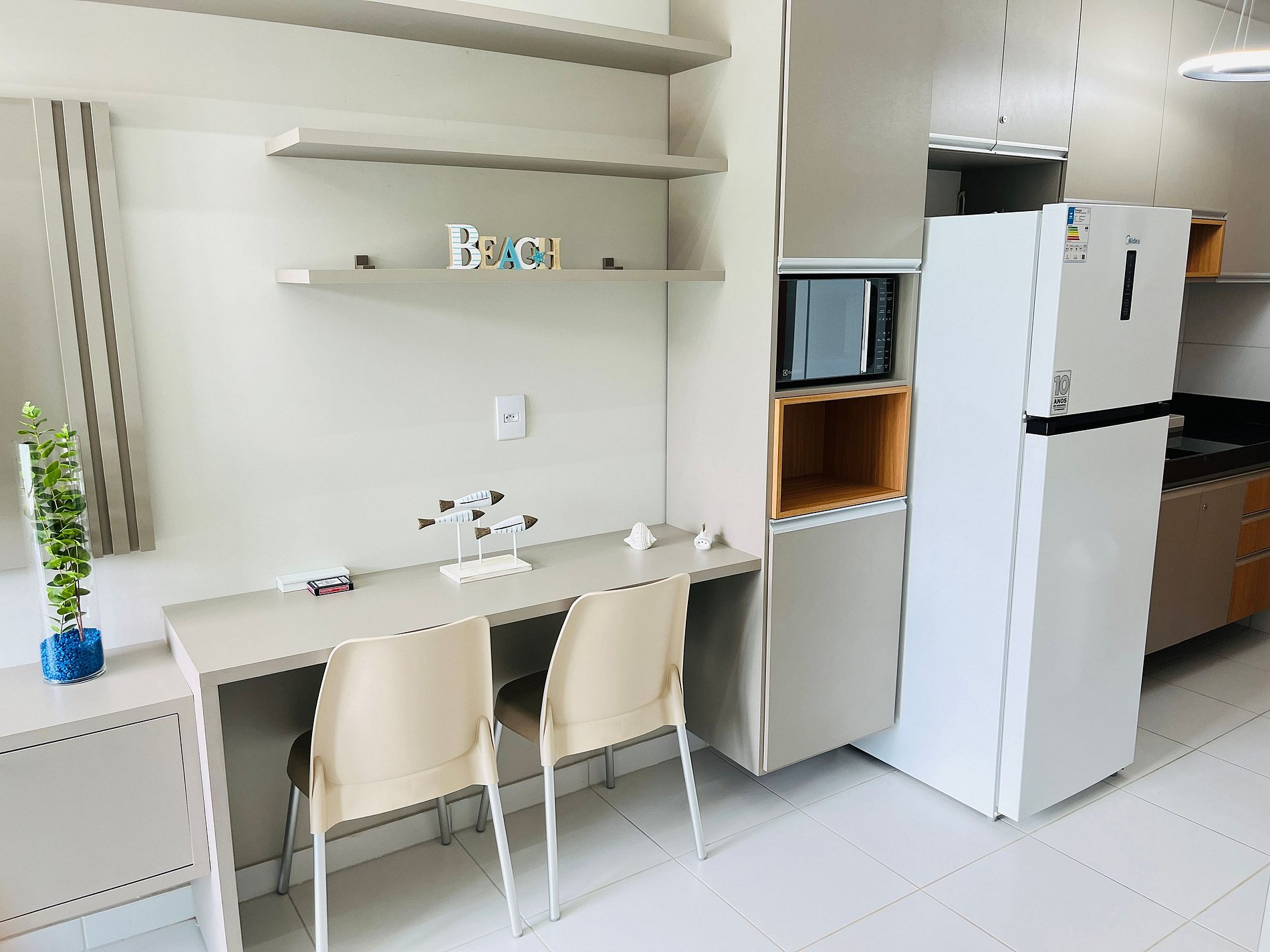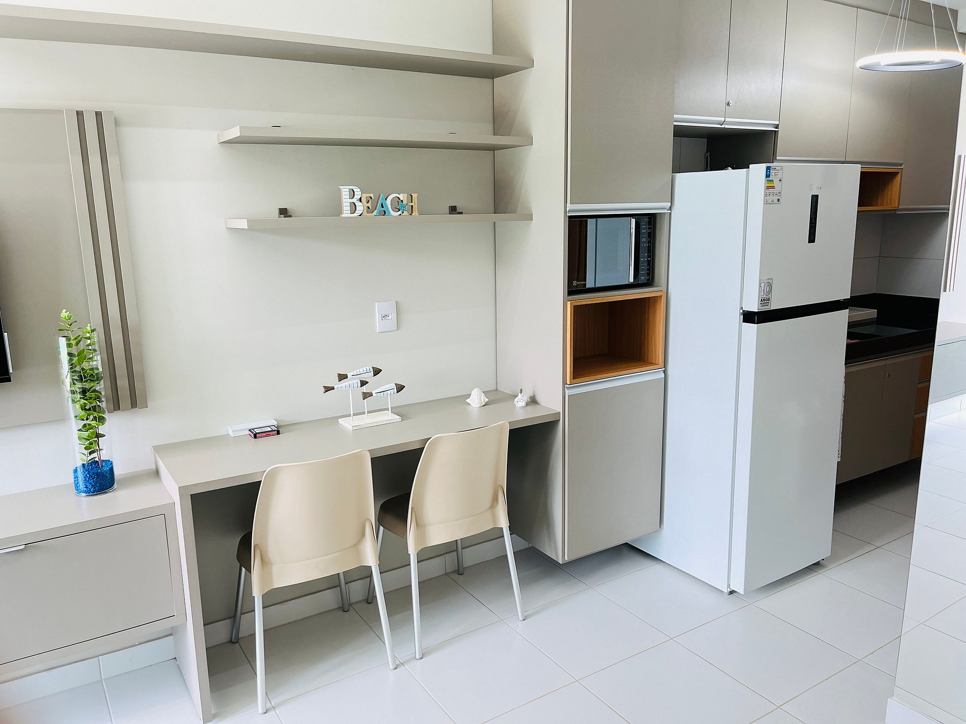 O apartamento totalmente mobiliado proporciona um ambiente confortável e funcional, equipado com todas as comodidades essenciais para sua estadia.