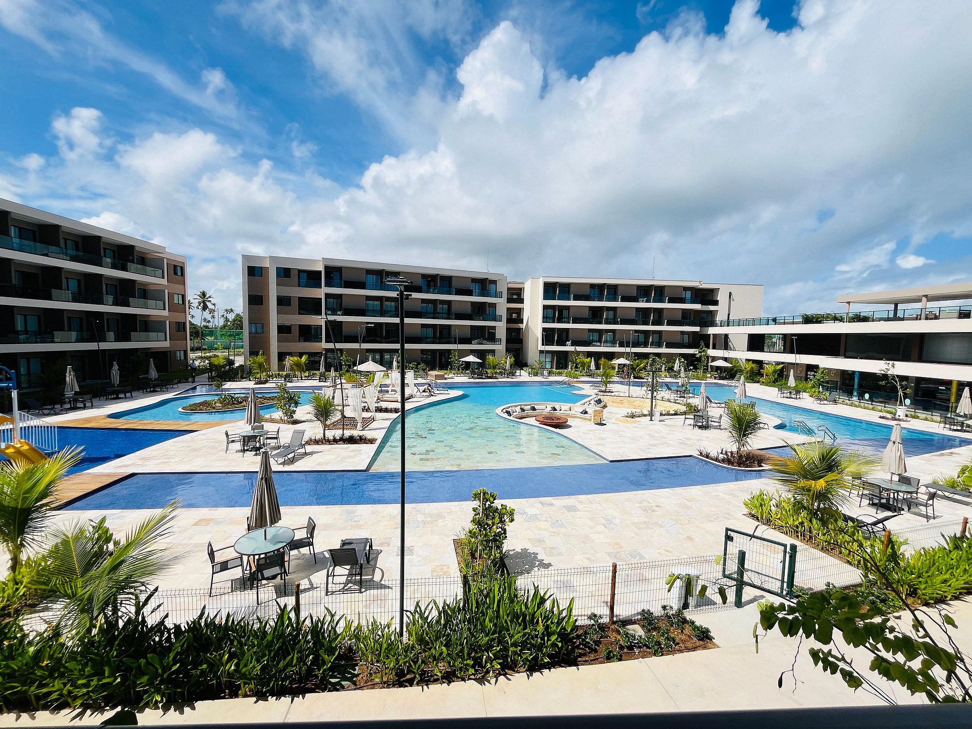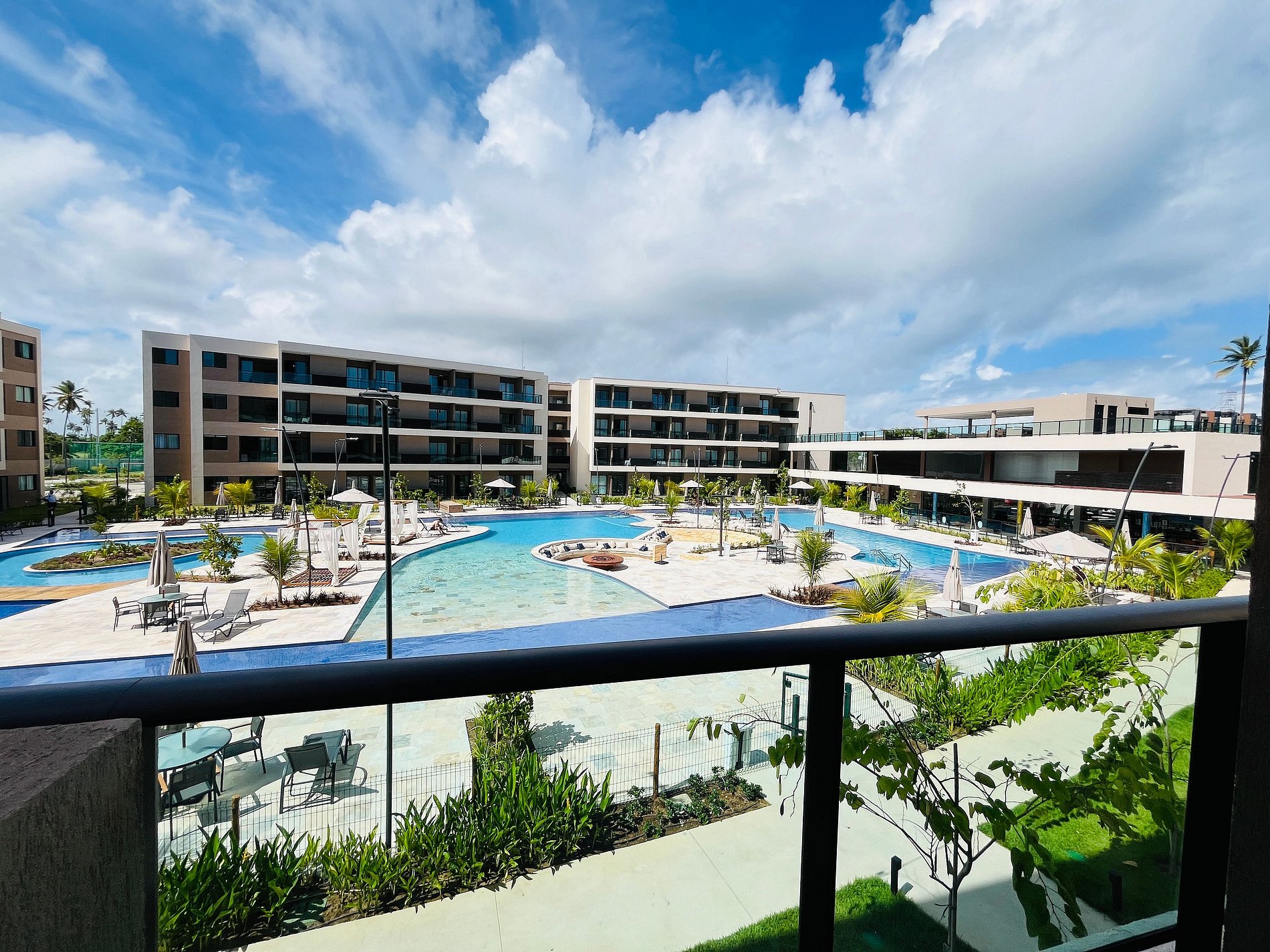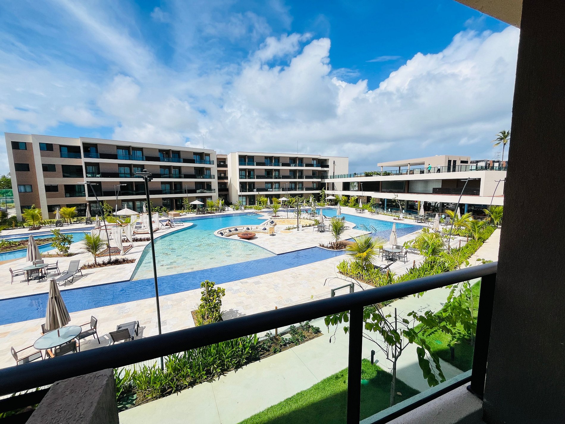 - Varanda com vista para as piscinas centrais