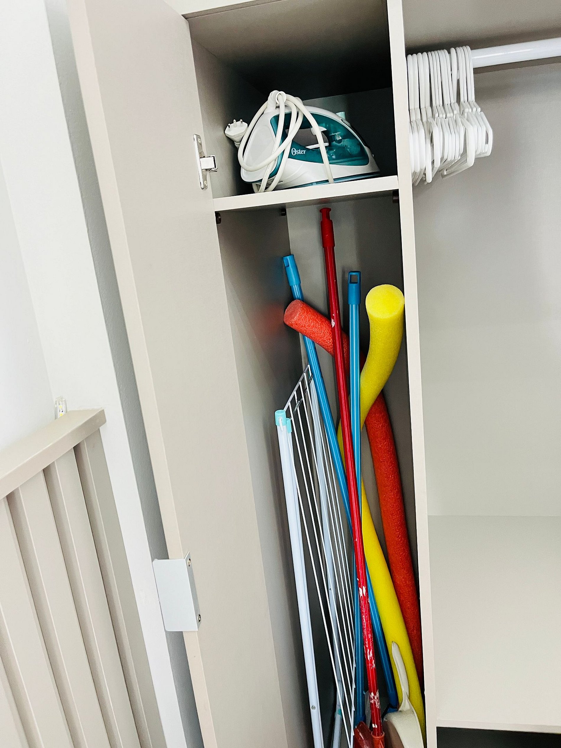 - Ferro de passar, secador de cabelo e varal