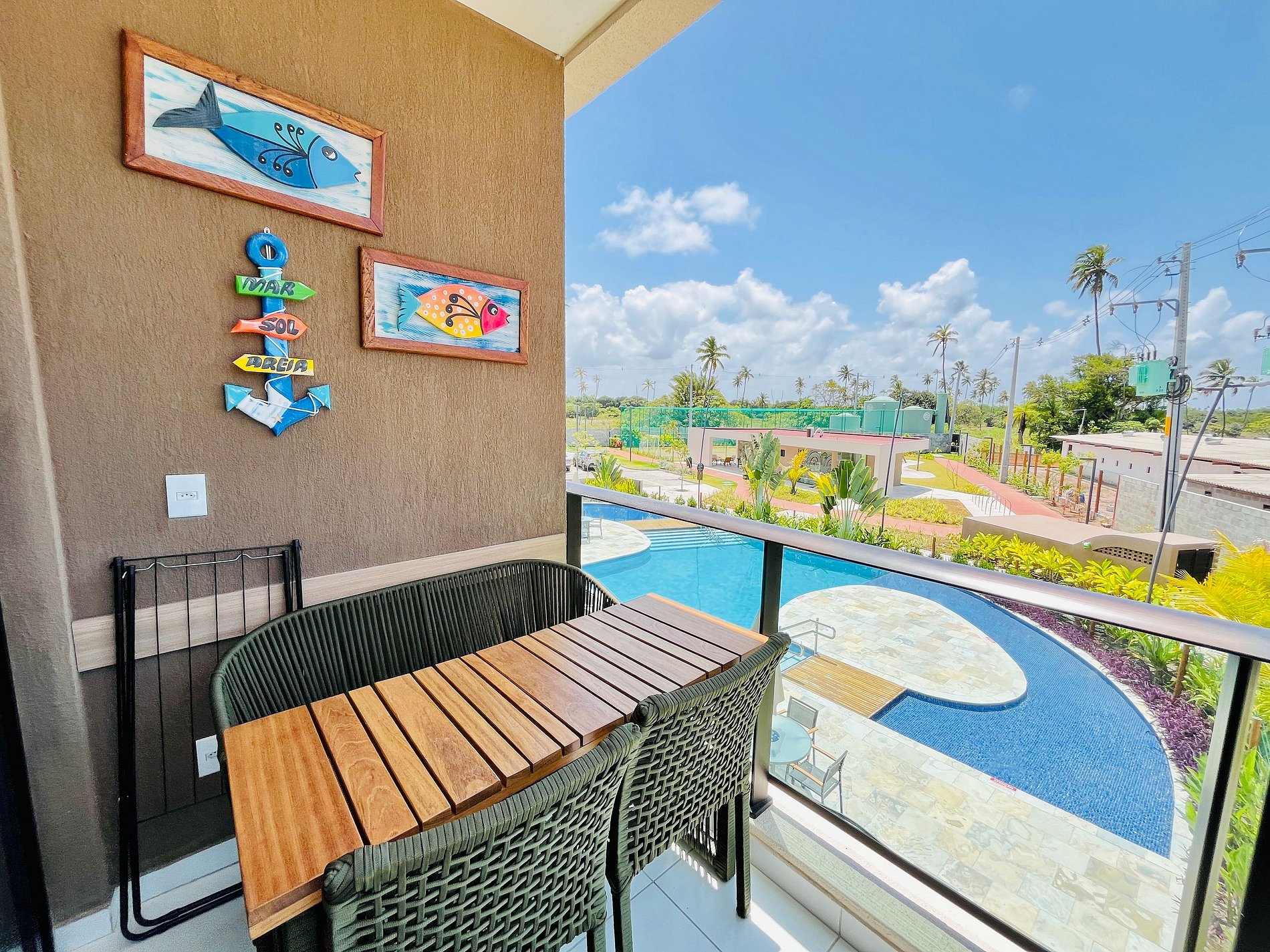 - Varanda com vista para as piscinas