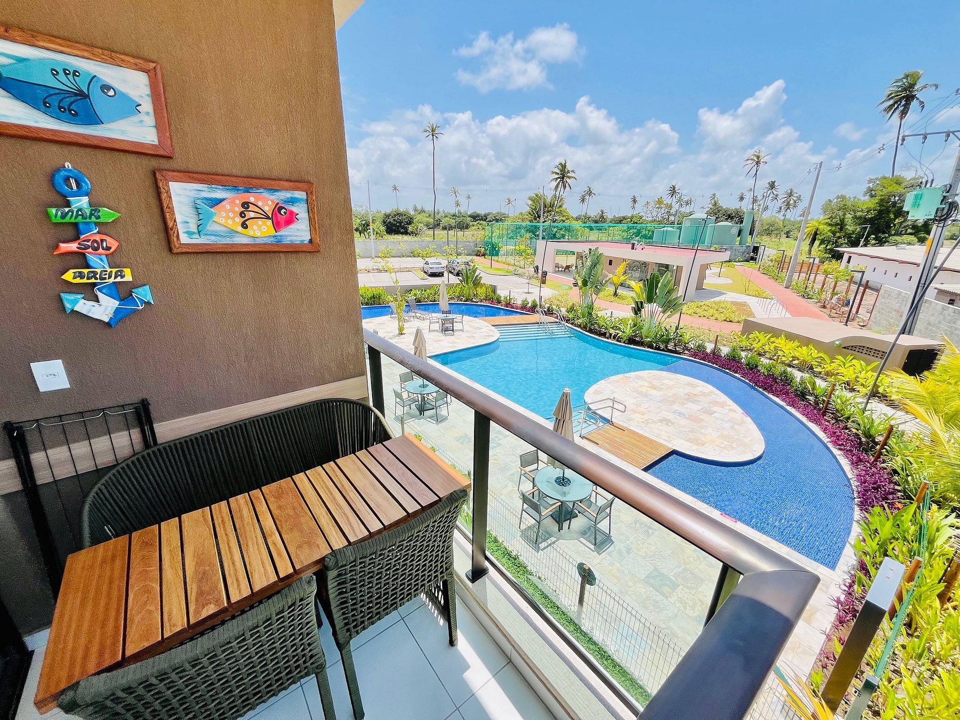 - Varanda com vista para as piscinas