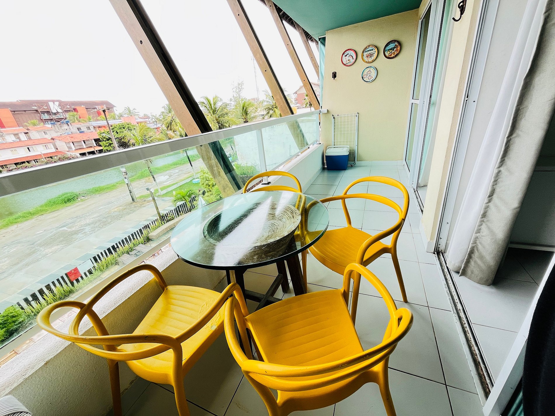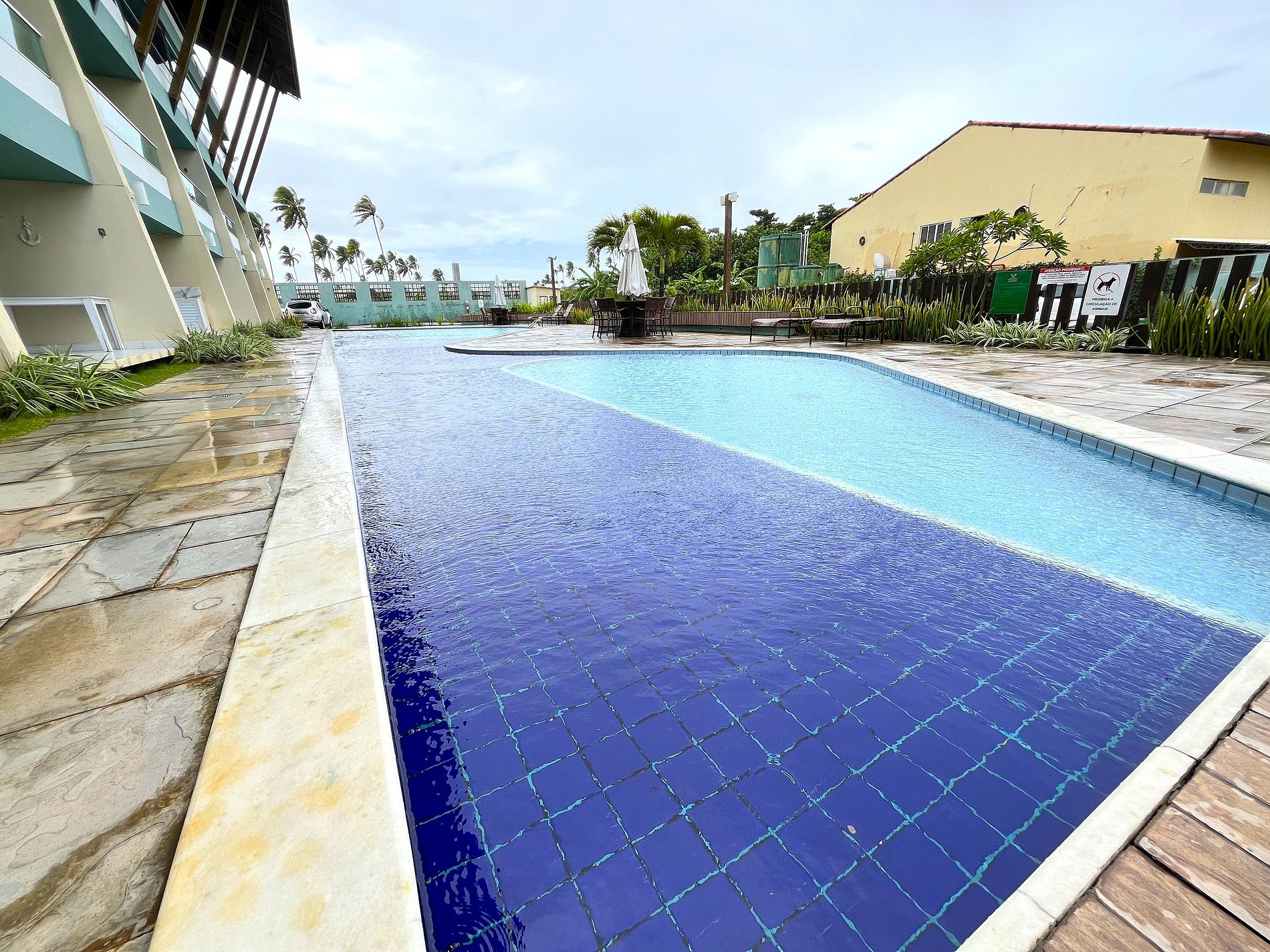 - Varanda com vista para as piscinas