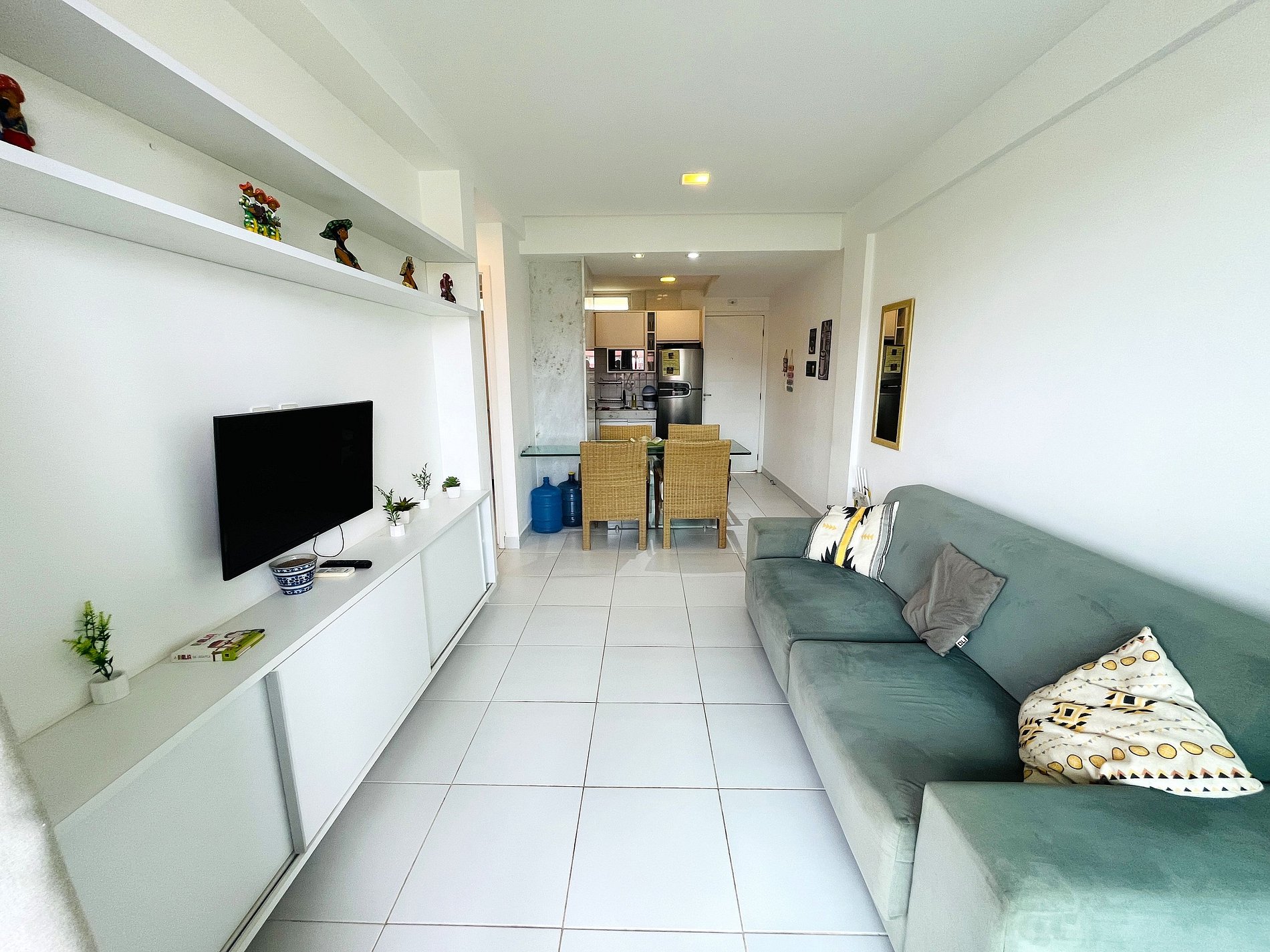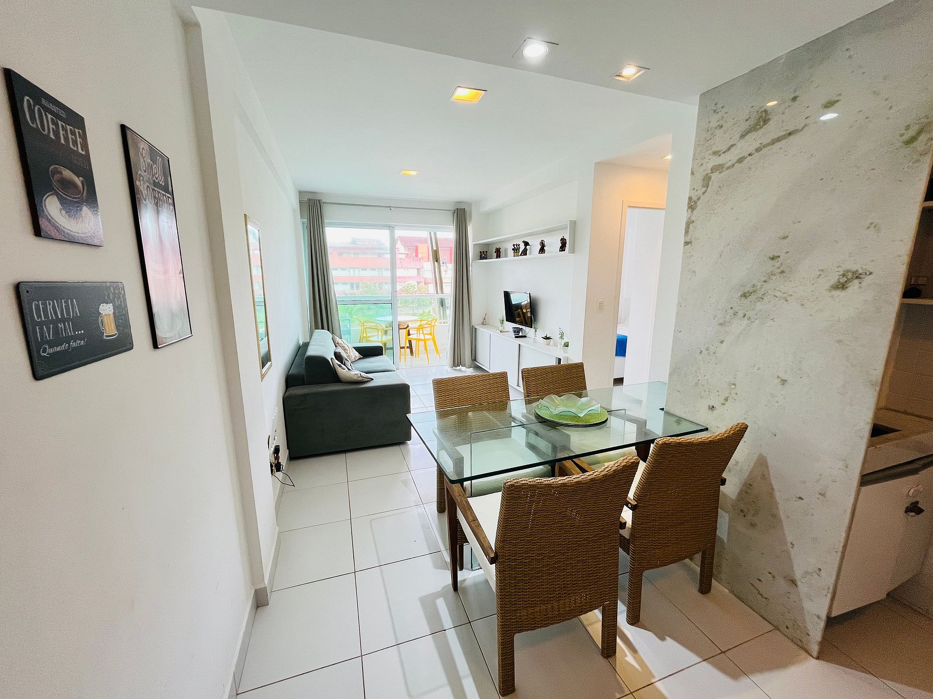 O apartamento totalmente mobiliado proporciona um ambiente confortável e funcional, equipado com todas as comodidades essenciais para sua estadia.