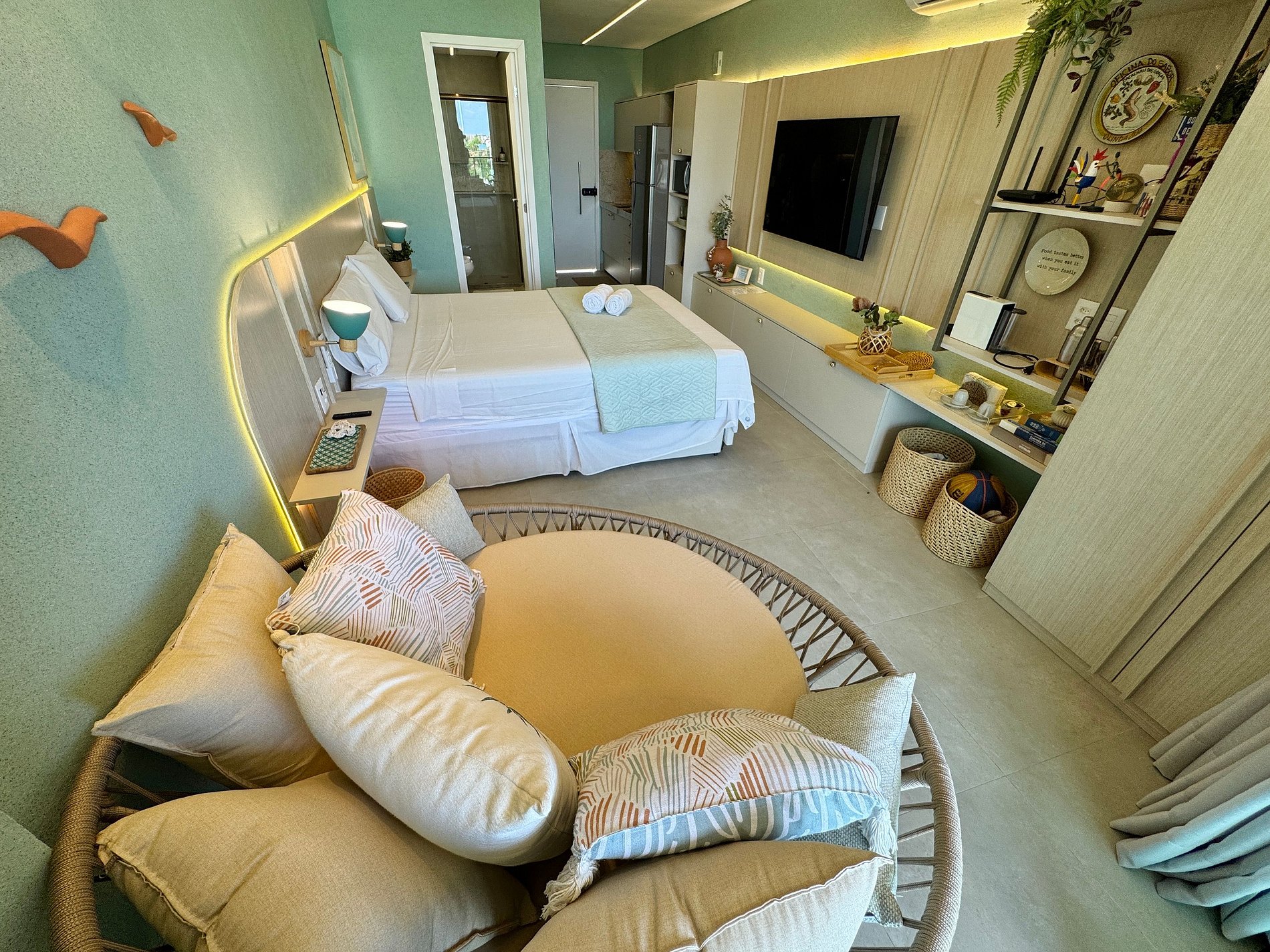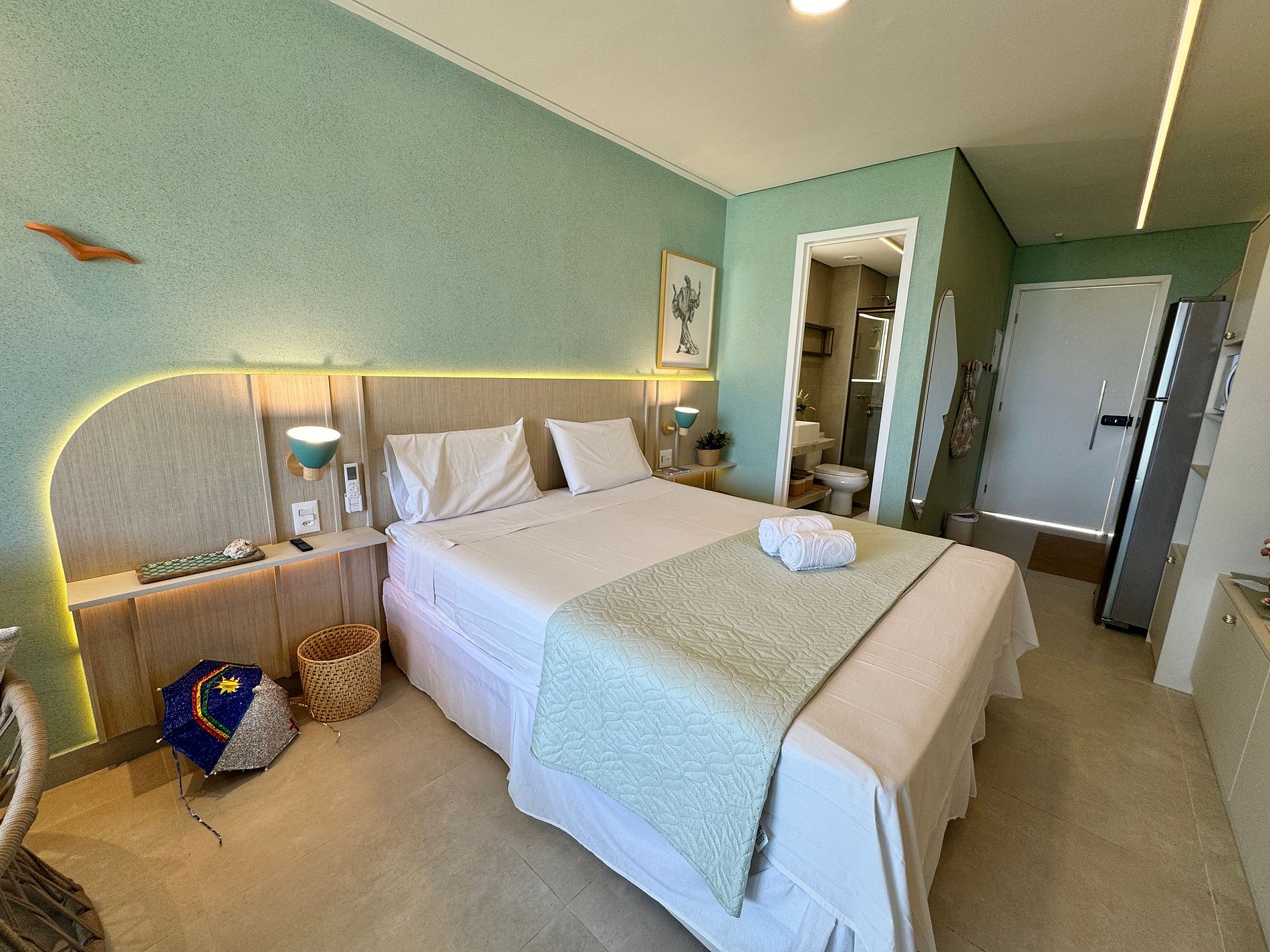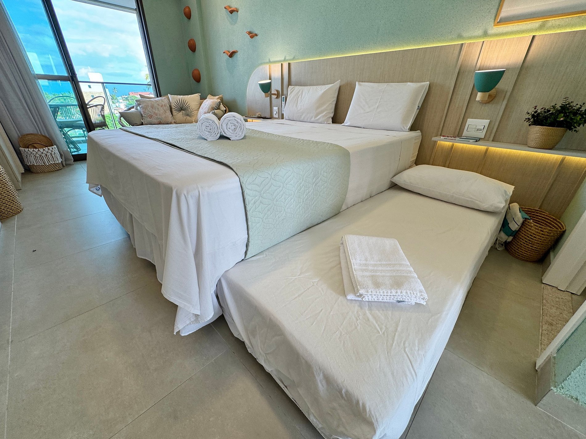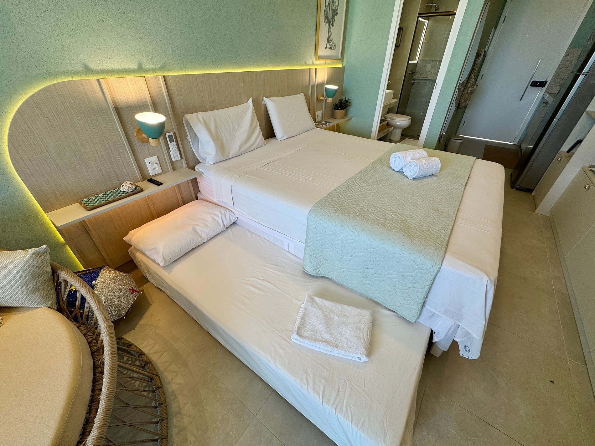 Com quarto bem distribuído e ambiente climatizado, o espaço é ideal para famílias ou grupos de amigos que desejam curtir Porto de Galinhas com mais comodidade e estrutura de um verdadeiro Resort.