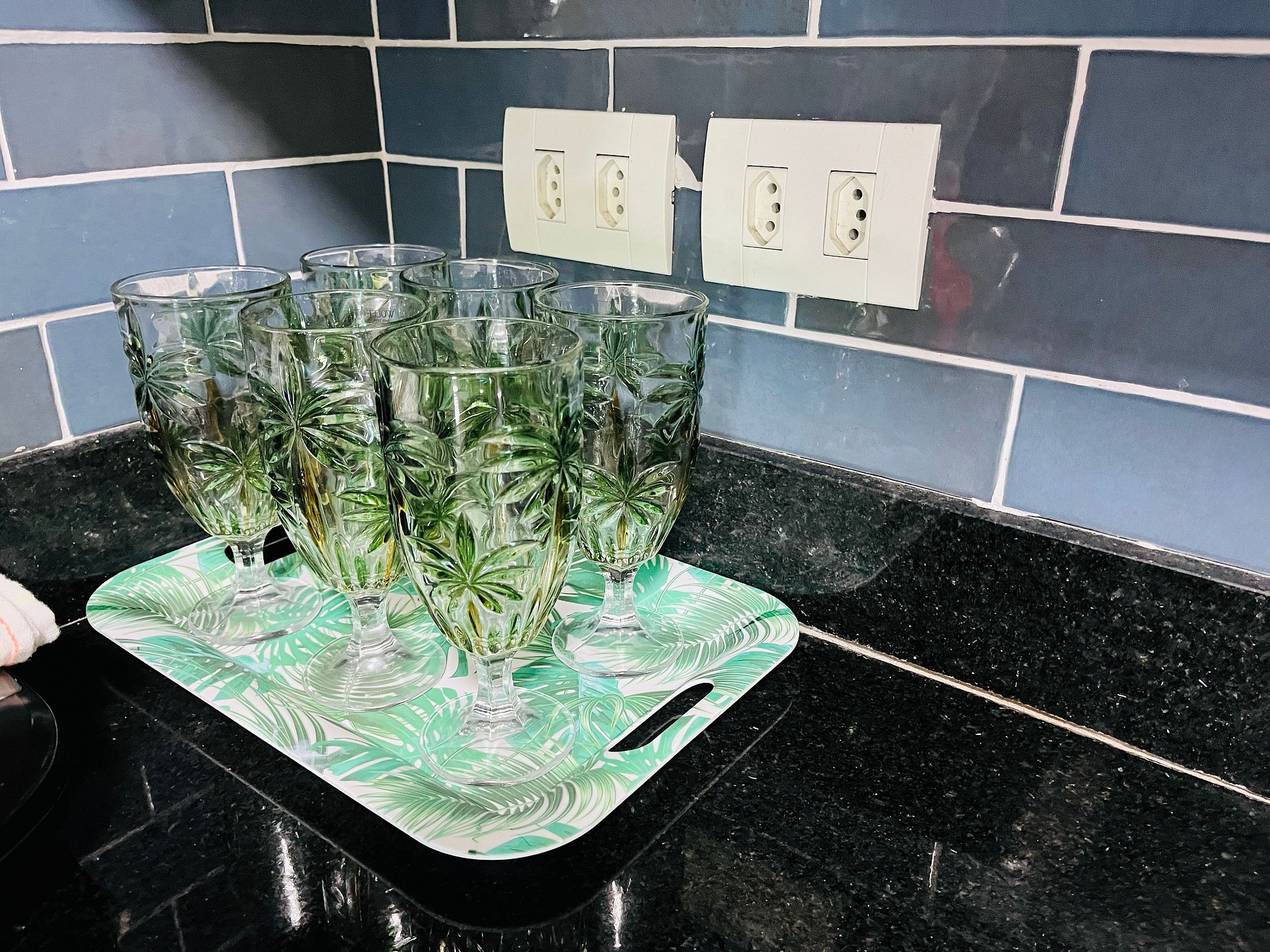 - Cozinha equipada com geladeira, micro-ondas, cooktop elétrico, forno, cafeteira, sanduicheira, liquidificador e utensílios diversos