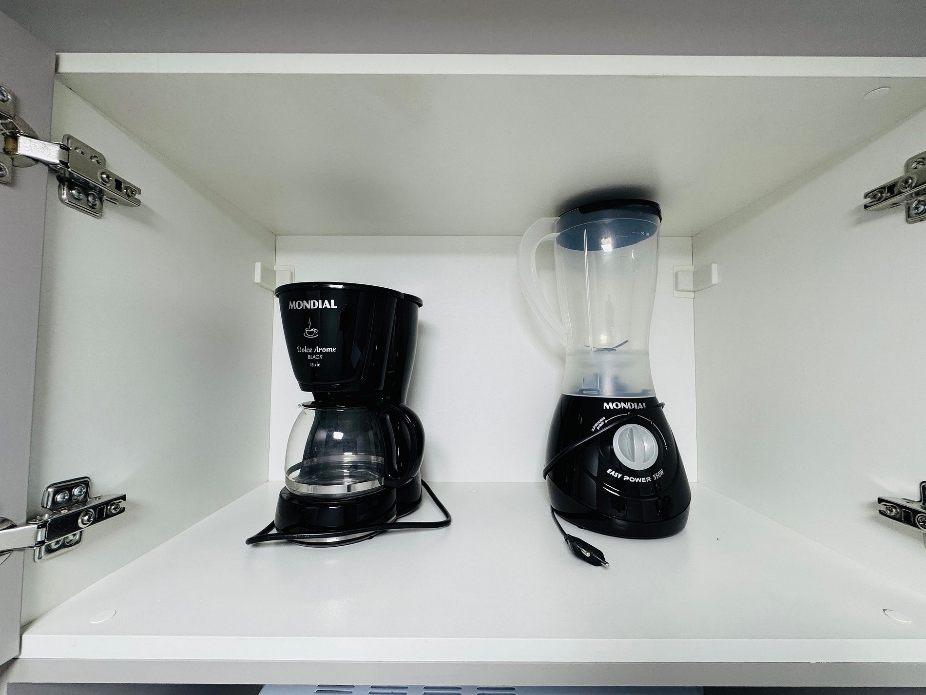 - Cozinha equipada com geladeira, micro-ondas, fogão elétrico, cafeteira, liquidificador e utensílios diversos