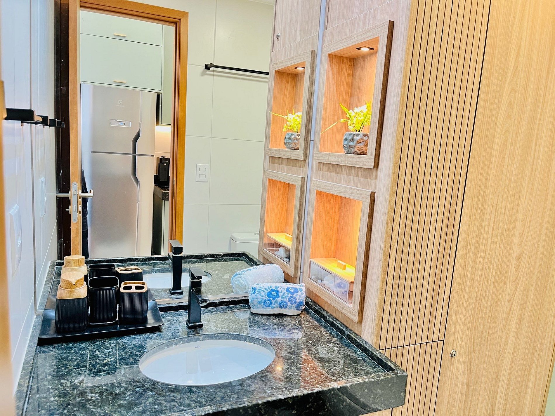 O apartamento totalmente mobiliado proporciona um ambiente confortável e funcional, equipado com todas as comodidades essenciais para sua estadia.