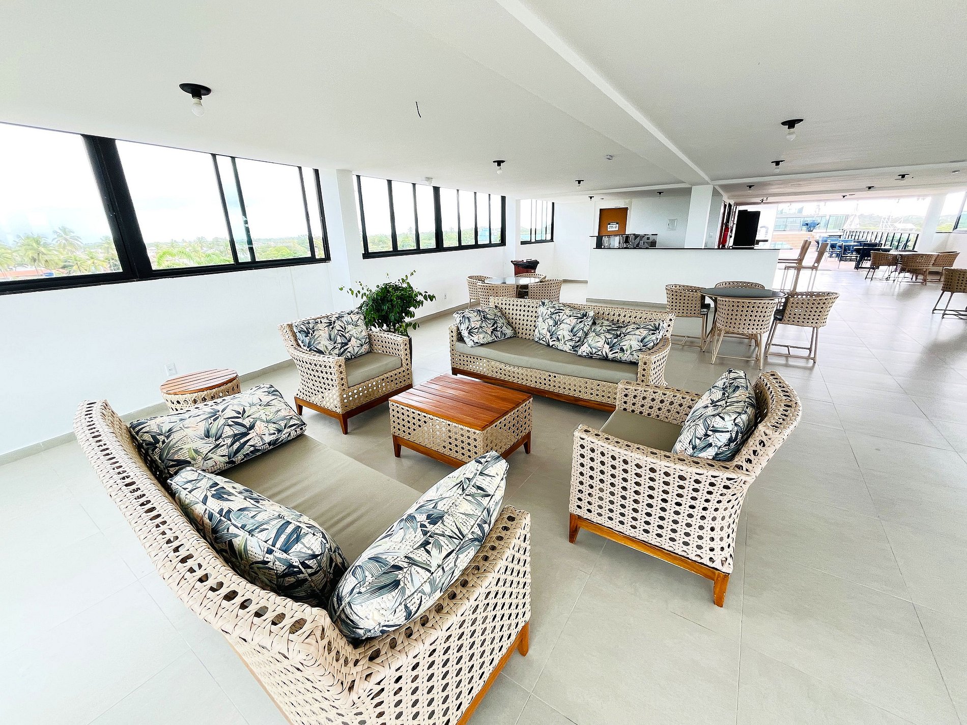 - Mesas e sofás com vista panorâmica